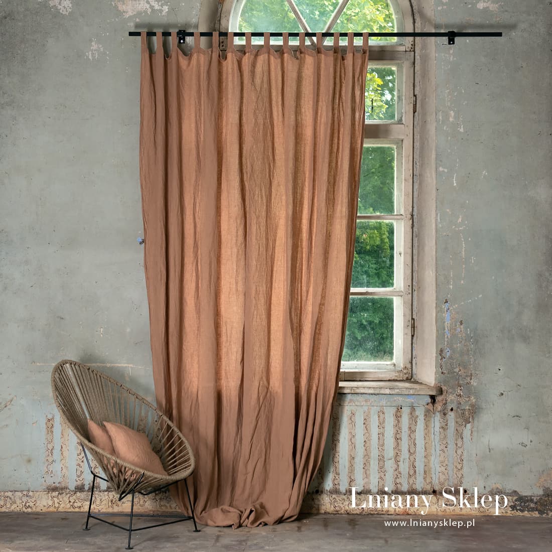 • Jasne brązowe zasłony będą się ciekawie prezentowały w pomieszczeniu, w którym mamy sporo przedmiotów z naturalnego drewna, w którym dominują barwy natury.