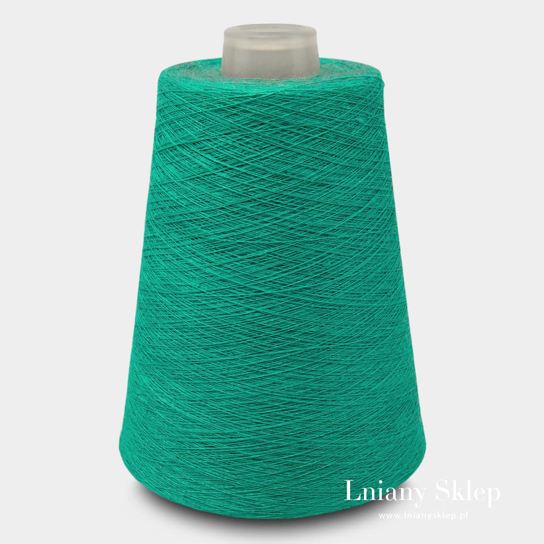 Przędza lniana w kolorze morskiej zieleni. Numer koloru w katalogu AB "Siūlas" - 4(1).