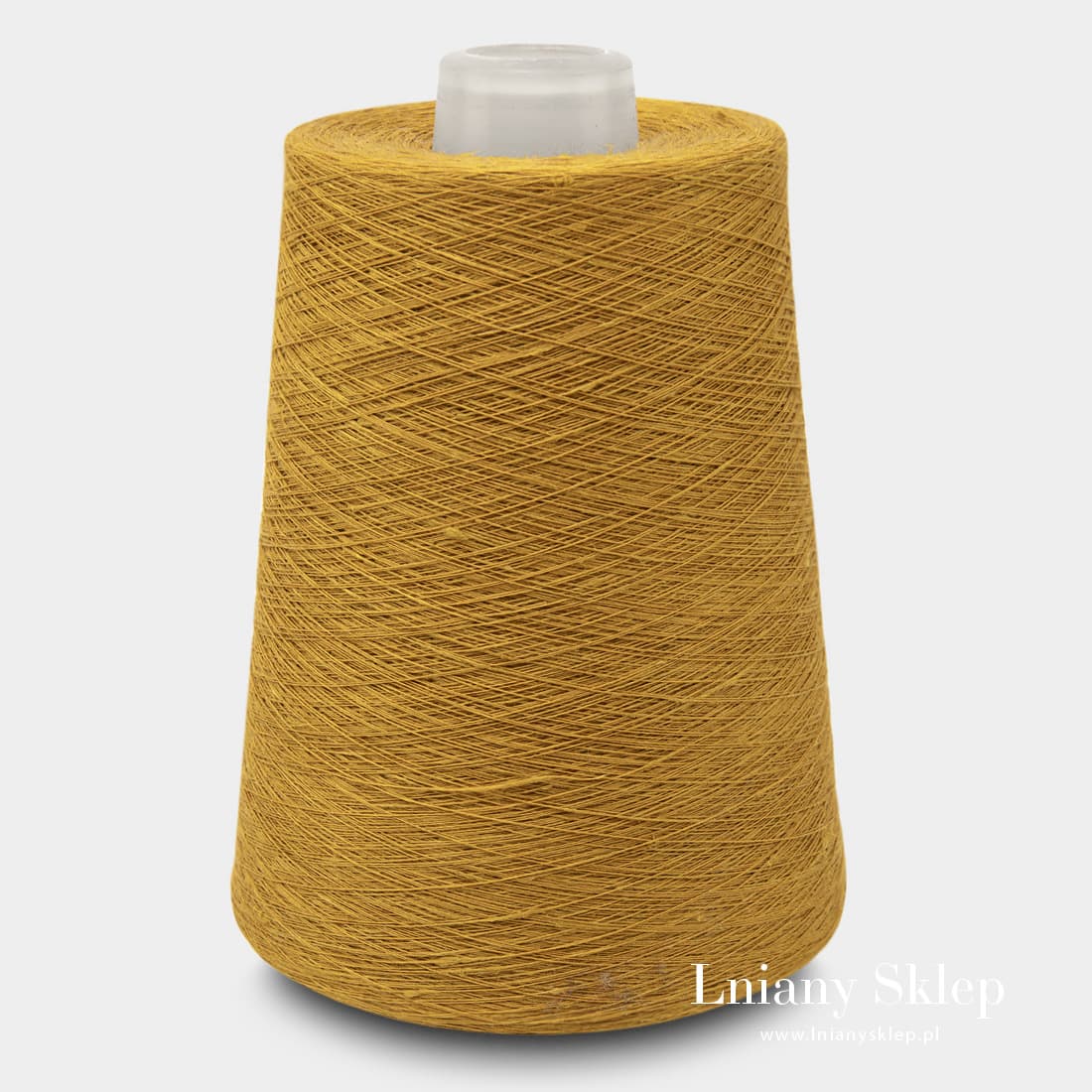 Przędza lniana w kolorze złotej, głębokiej ochry. Numer koloru w katalogu AB "Siūlas" - 6(11).