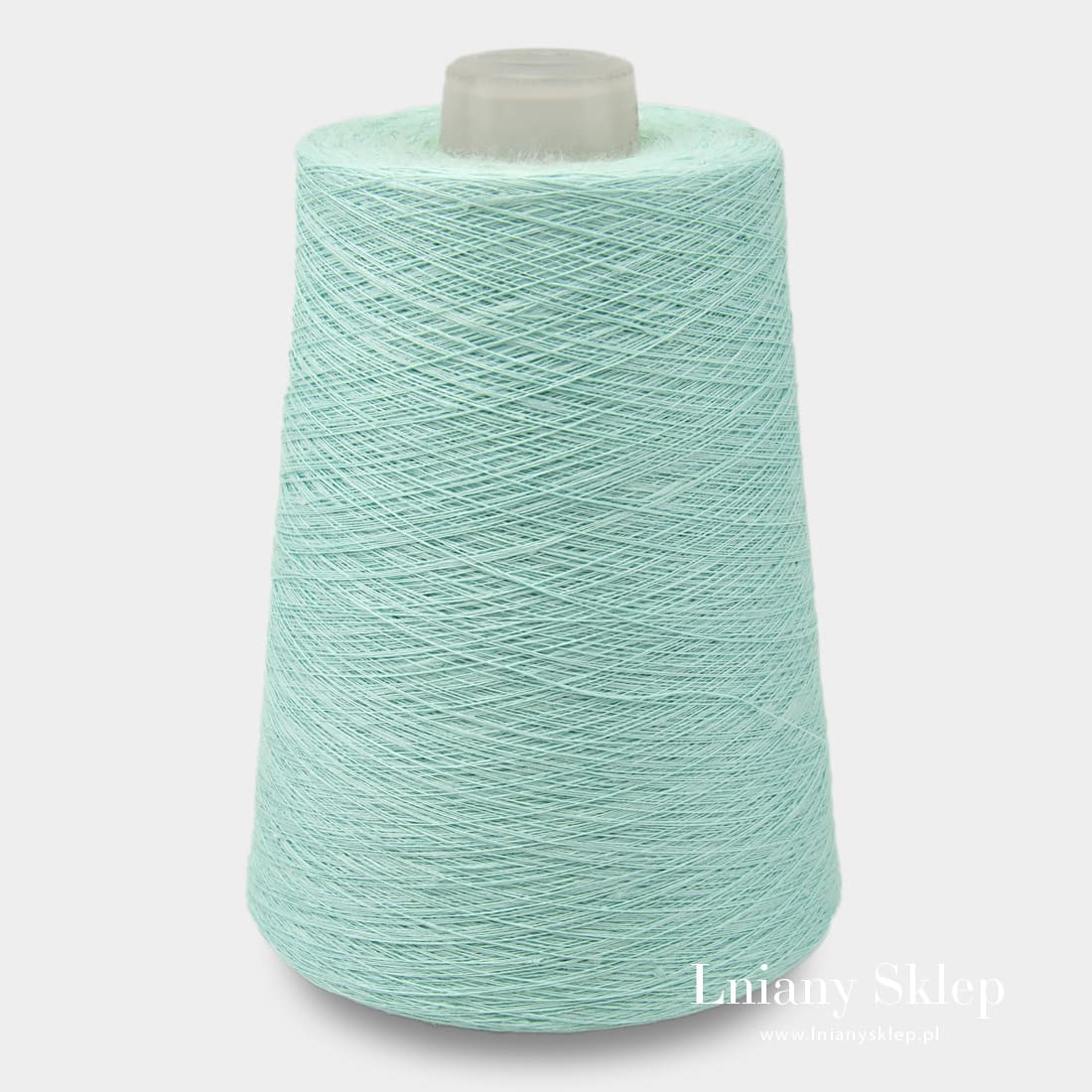 Przędza lniana w kolorze jasnej, seledynowej zieleni. Numer koloru w katalogu AB "Siūlas" - 9(9).