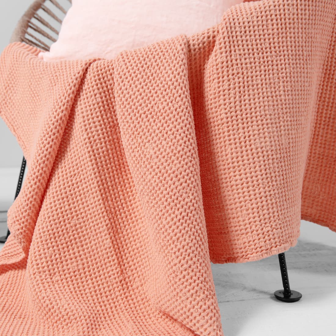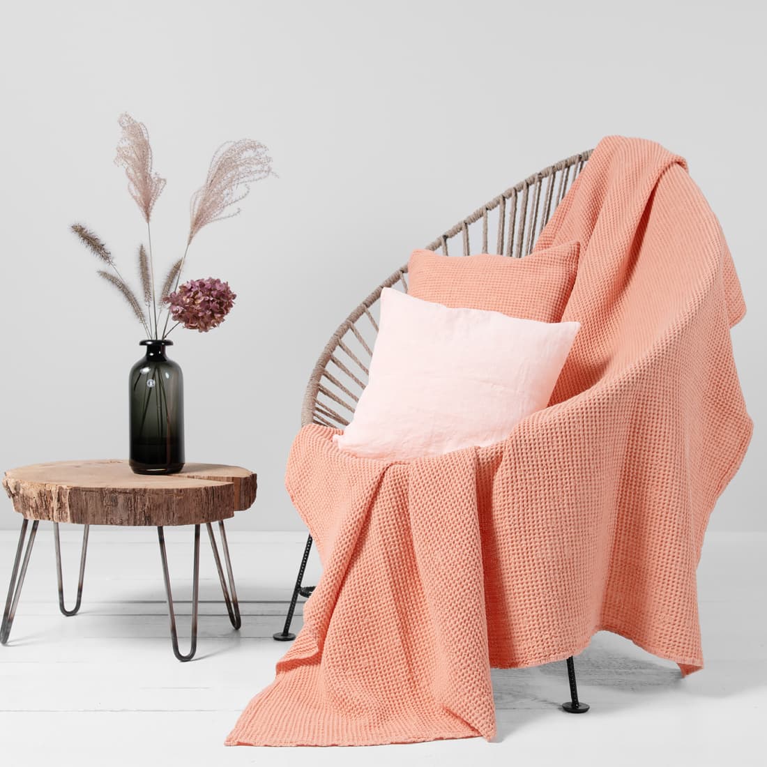 - Kolor: wytkany w melanżu z brzoskwiniowej i pudrowej przędzy