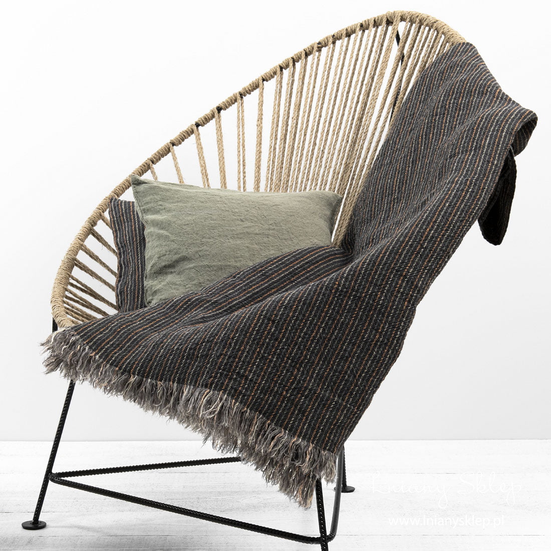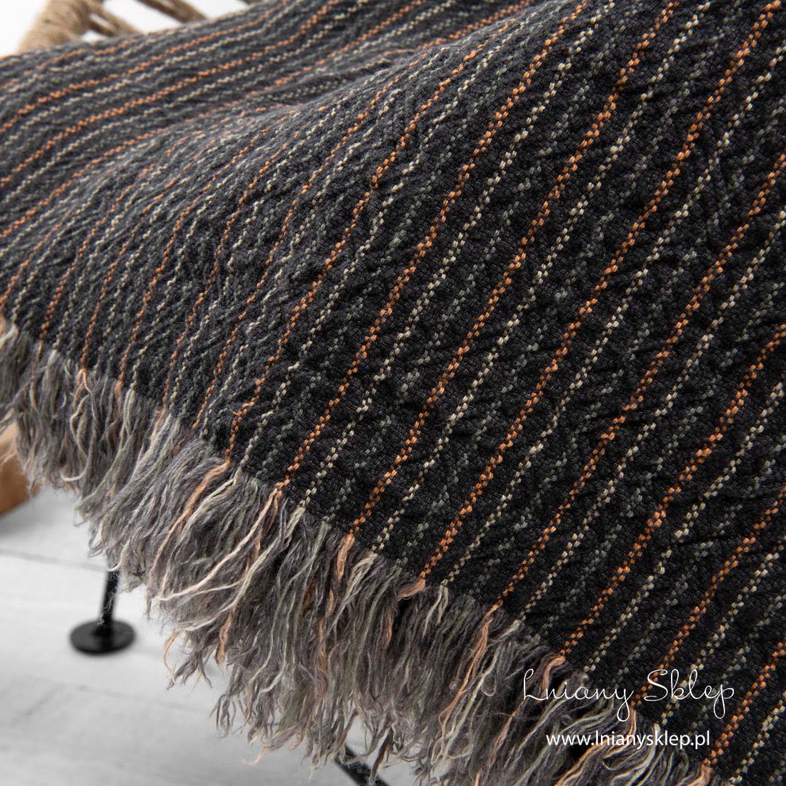 Lniany pled w pasy szare i piaskowe. Pled uszyliśmy z tkaniny 100% lnianej wytkanej na szarym tle w paski piaskowe, brązowe i szare o zielonym odcieniu. Brzegi pledu zdobią zabawne frędzelki. W procesie produkcji pled poddaliśmy praniu (dekatyzacji), dzięki czemu pled jest mięciutki i przytulny. Pled miłośnikom naturalnych barw i włókien.