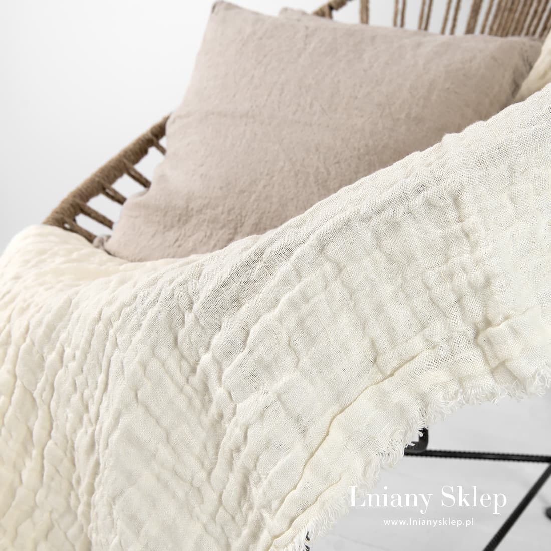 - Detale: 1,5cm frędzelki zdobią wszystkie brzegi pledu