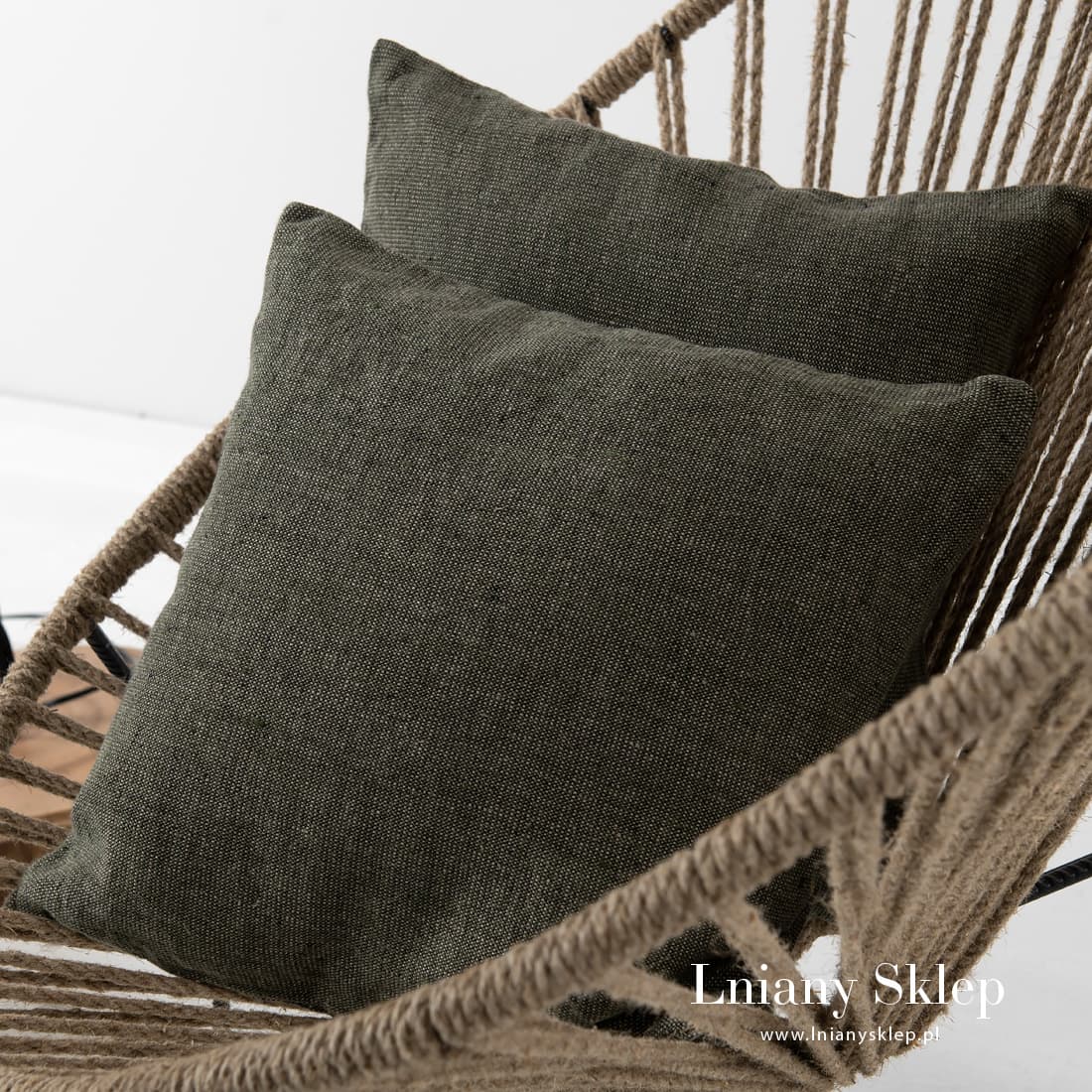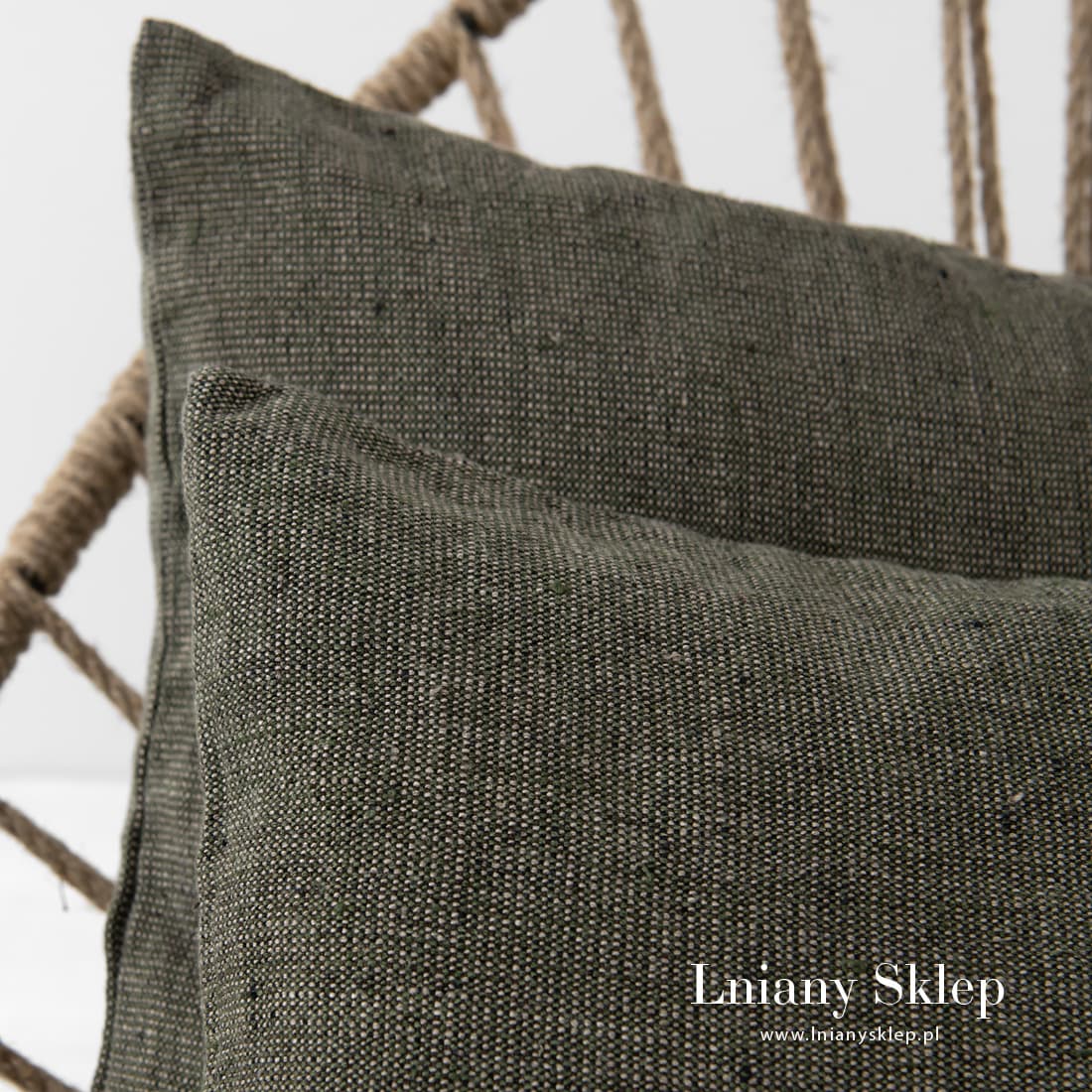MOSSA khaki poszewka na poduszkę 40x40cm wytakna z przędzy zielonej, piaskowej (szarej o beżowym odcieniu), czarnej i brązowej. Poszewka zasuwa się na zamek błyskawiczny. Przytulna, mięciutka poszewka z włókien naturalnych. W naszej kolekcji – pled z identycznej tkaniny. Ozdób pokój lub sypialnię pledem i poduszkami w poszewkach z ciężkiego, acz mięciutkiego lnu 100%.