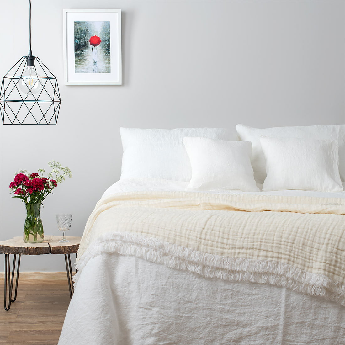 Komplet białej pościeli lnianej “Marzenie” składa się z mlecznobiałych (lekko żółtawych): prześcieradła, poszwy na okrycie i poszewki na poduszkę. Tkanina, z której wykonana jest pościel, jest gęsto wytkana i dość lekka. W procesie produkcji została poddana specjalnemu praniu, dlatego po kolejnych praniach pościel już się nie ściągnie. Odkryj radość naturalnej pościeli, która nie wymaga prasowania. Ten komplet jest piękny i praktyczny!