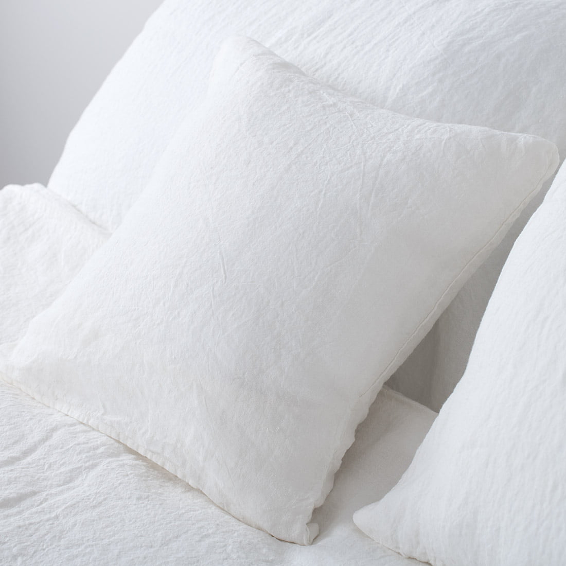 Mlecznobiała poszewka na poduszkę jest szyta „na zakładkę” z boku.