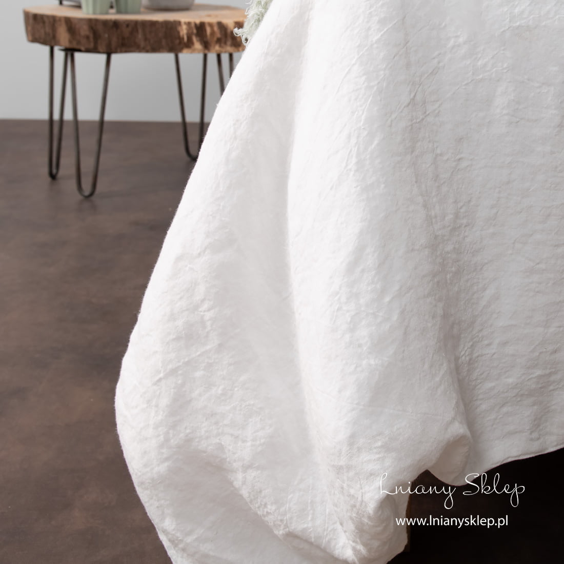 - Białe prześcieradło zwykle podwinięte albo z gumką.