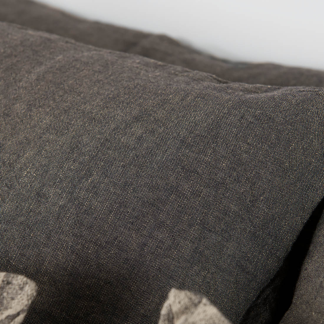 Ciemna szara pościel lniano – bawełniana została uszyta z melanżowej tkaniny wytkanej z przędzy czarnej i niebarwionej (piaskowej). W naszej kolekcji: poszwy na kołdry, poszewki na poduszki i prześcieradła w różnych rozmiarach. Tkanina ma lekko gniecioną fakturę - nie potrzebuje prasowania. Lubisz ciemną pościel? Ten przytulny komplet z naturalnych włókien zasługuje na szczególną uwagę!