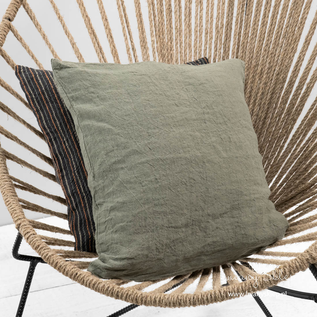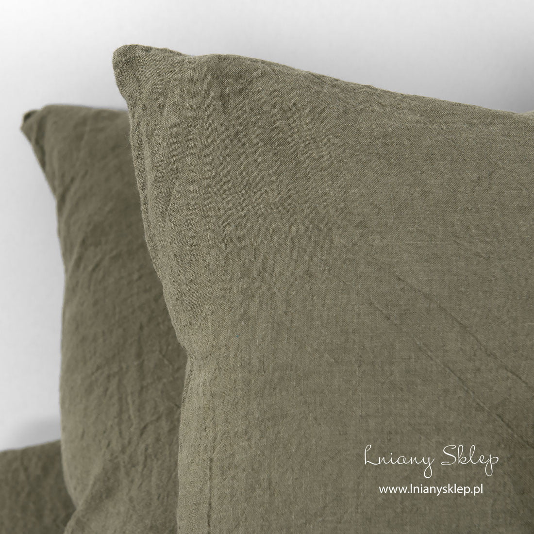 - Khaki poszewka na poduszkę jest szyta „na zakładkę” z boku.