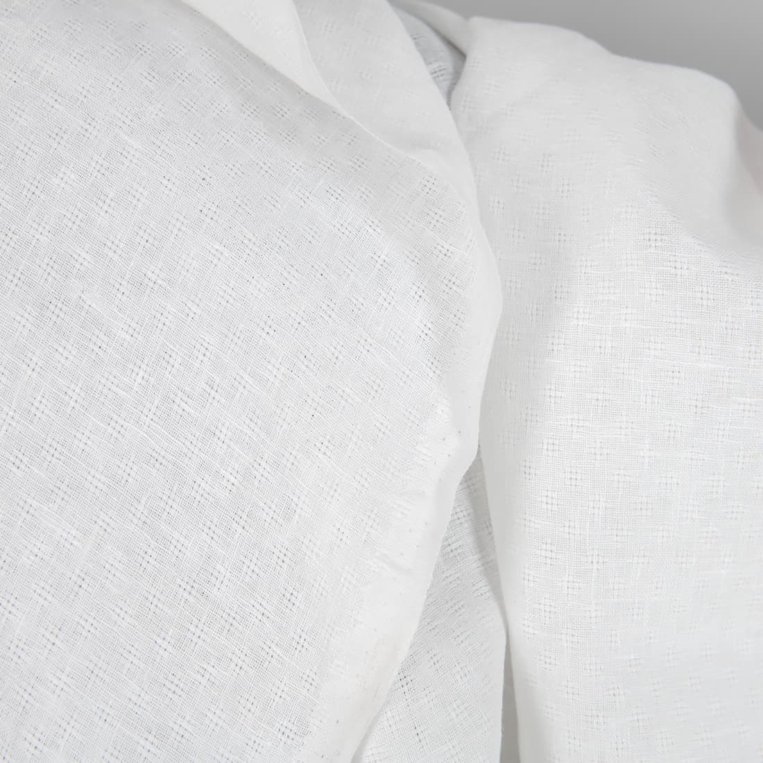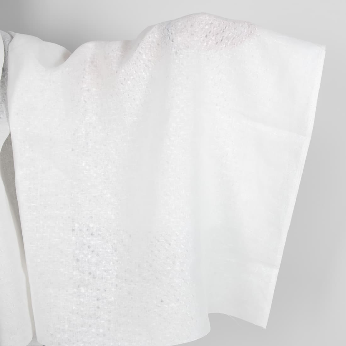 Mlecznobiała (żółtawa) tkanina lniana wytkana w ażurową krateczkę. Tkanina idealna na szycie produktów konfekcji kuchennej i stołowej, a także pościeli oraz delikatnych zasłon.