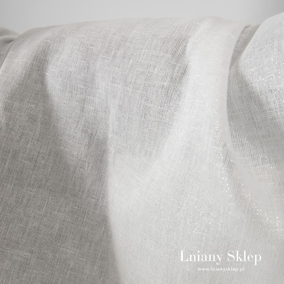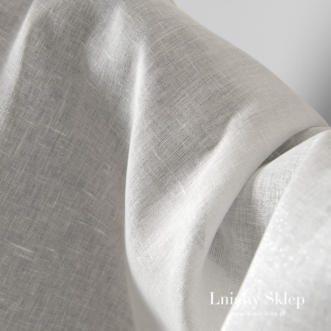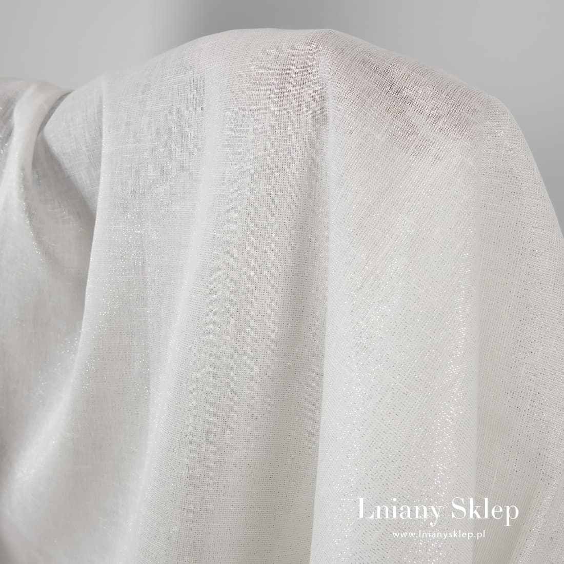 • Biała, połyskująca srebrem tkanina lniana.