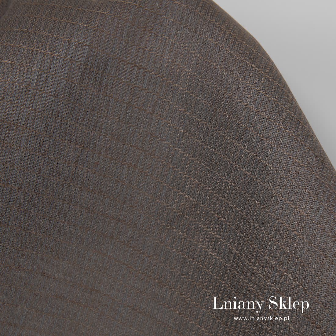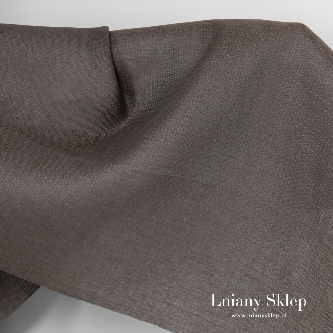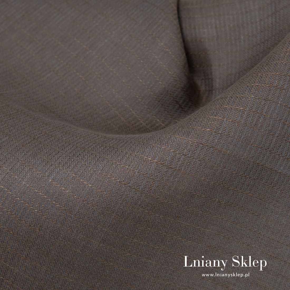 Brązowa tkanina o szarym odcieniu jest mocna, gęsta, średnio gruba. Na szycie najróżniejszych tekstyliów domowych i odzieży.