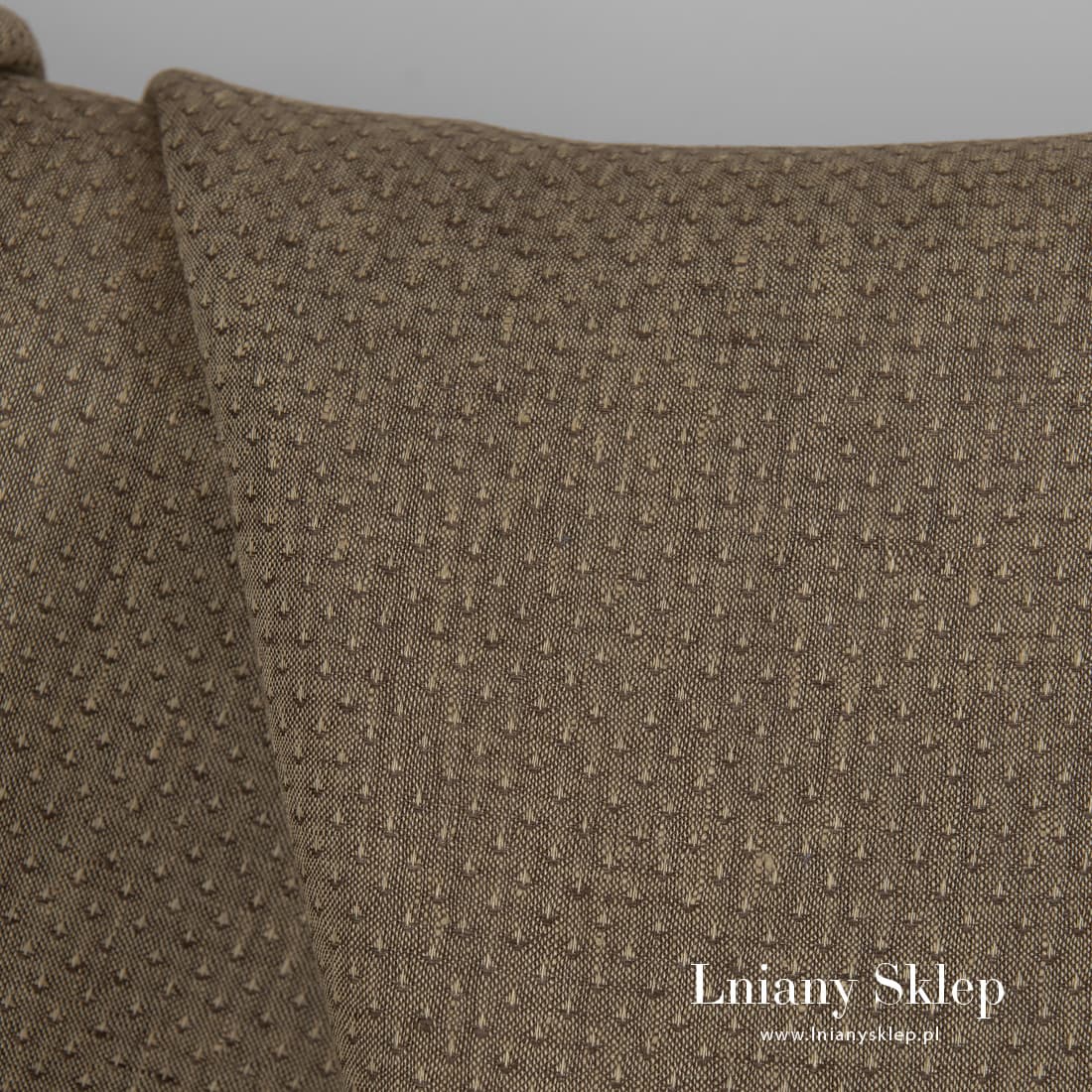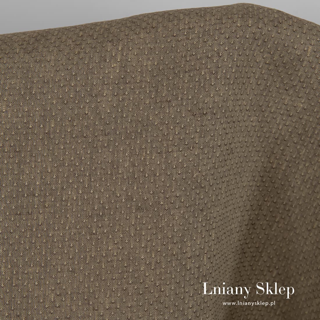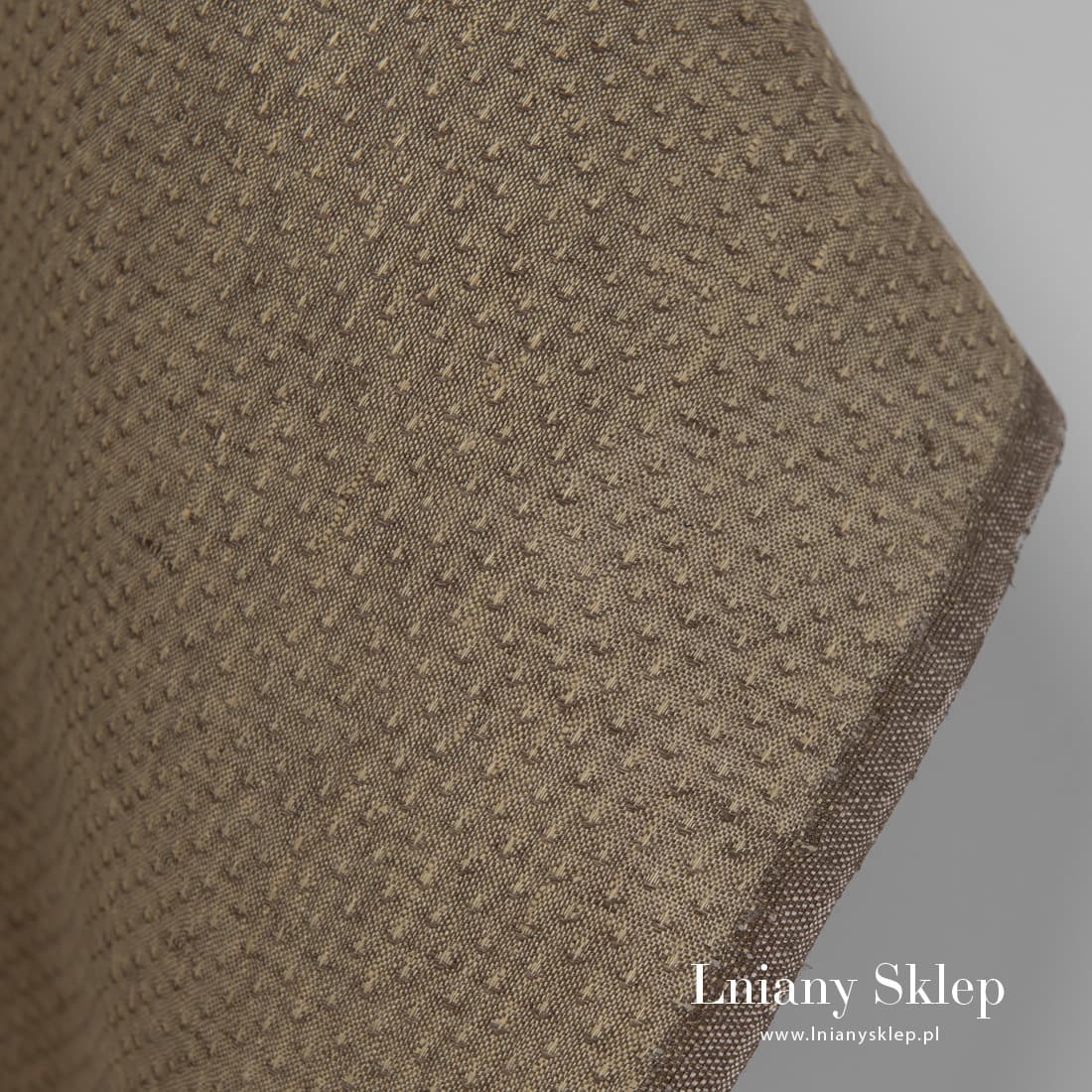 Brązowy len w drobny wzorek wytkany z przędzy brązowej i piaskowej. Mocna, gęsta, gruba tkanina lniana na szycie najróżniejszych tekstyliów domowych i odzieży.