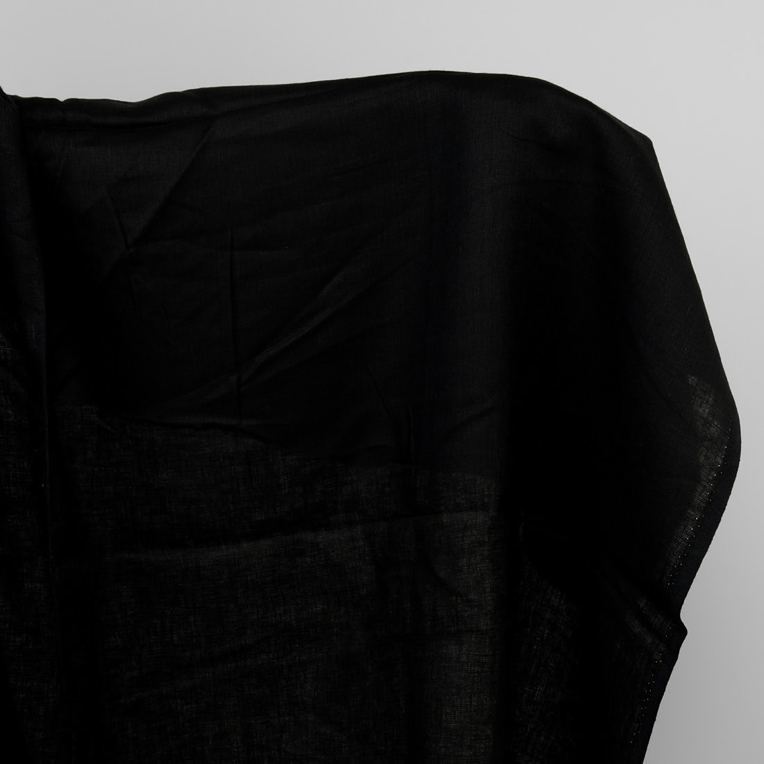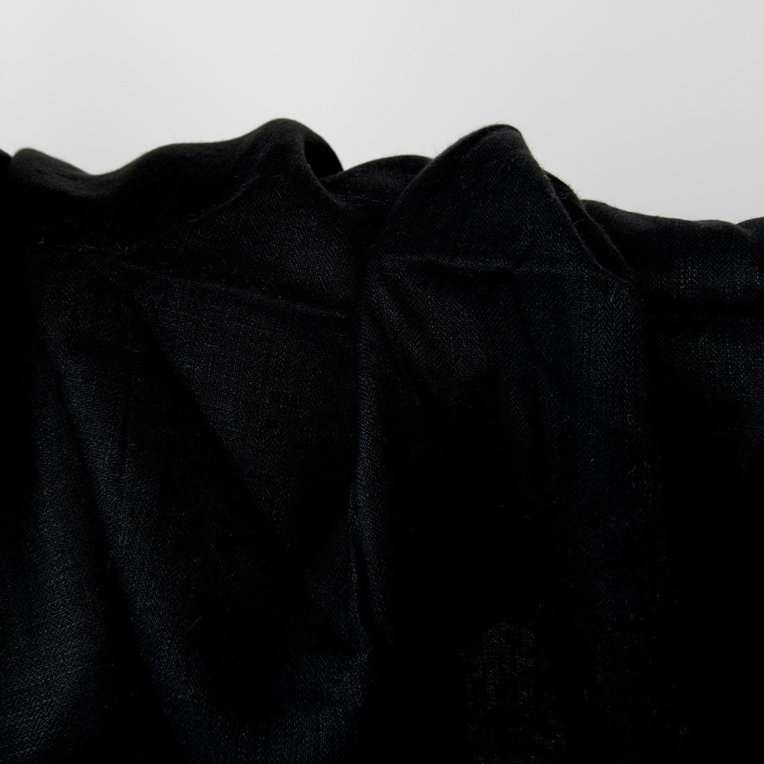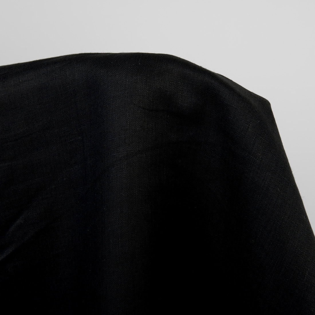 Lekka, dosyć gęsta tkanina lniana o splocie jodełkowym. Farbowana na czarno.