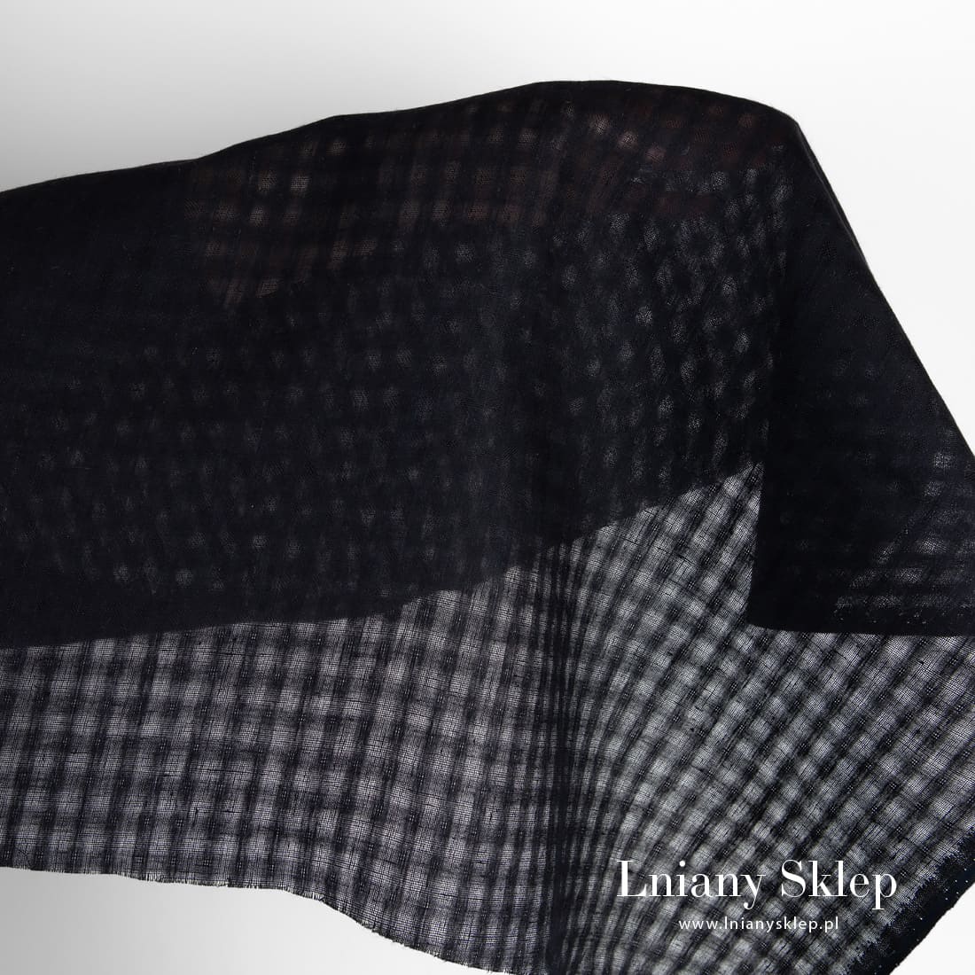 • Czarna w przeźroczystą kratkę tkanina lniana