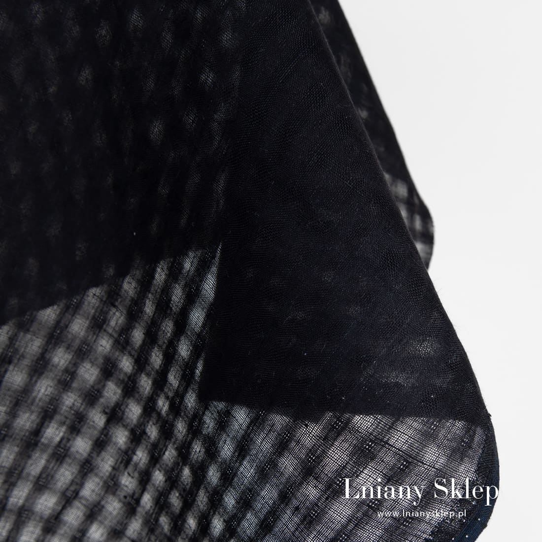 Czarna w przeźroczystą kratkę tkanina lniana