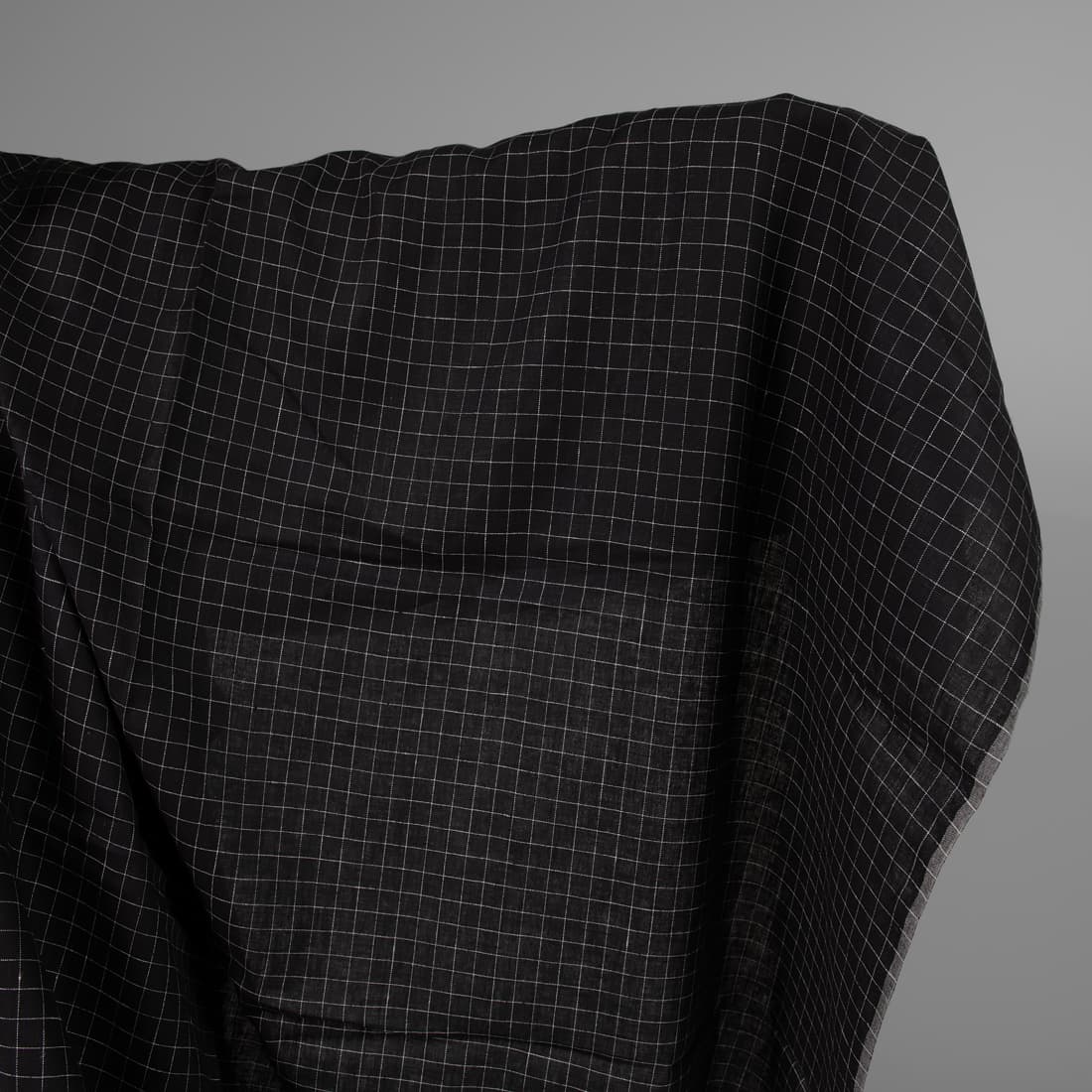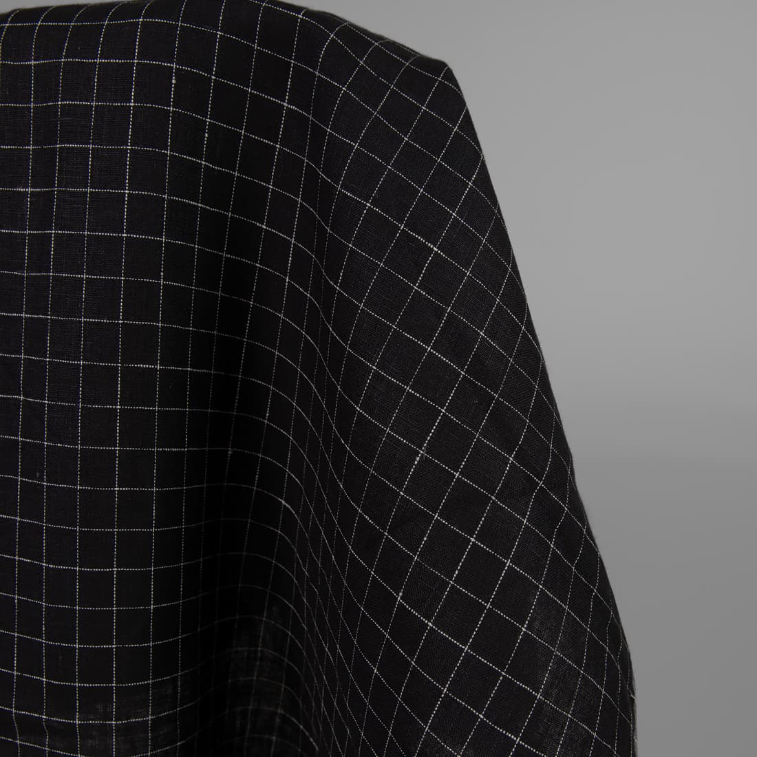 Czarny w białą krateczkę len