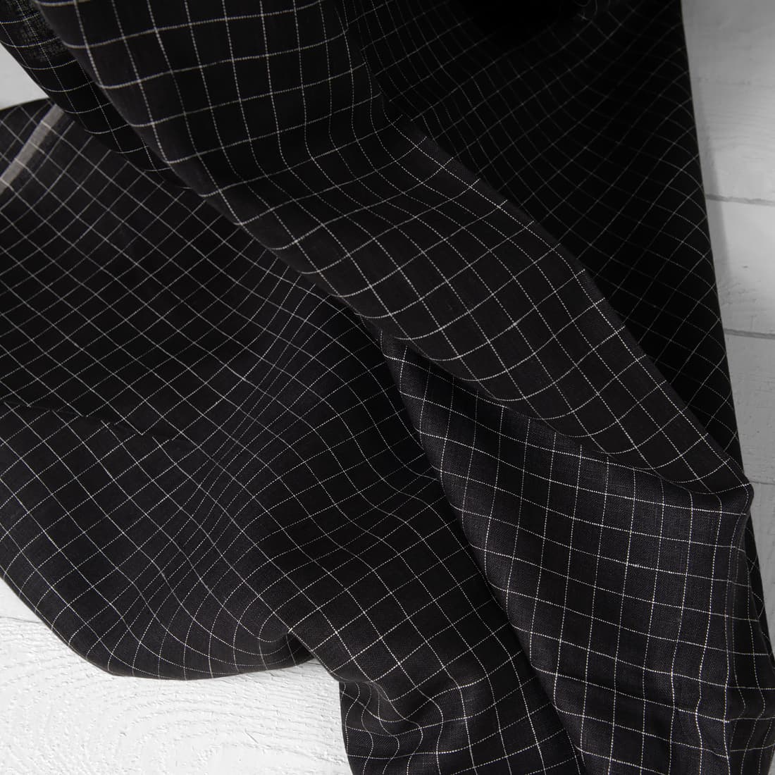 • Czarny w białą krateczkę len