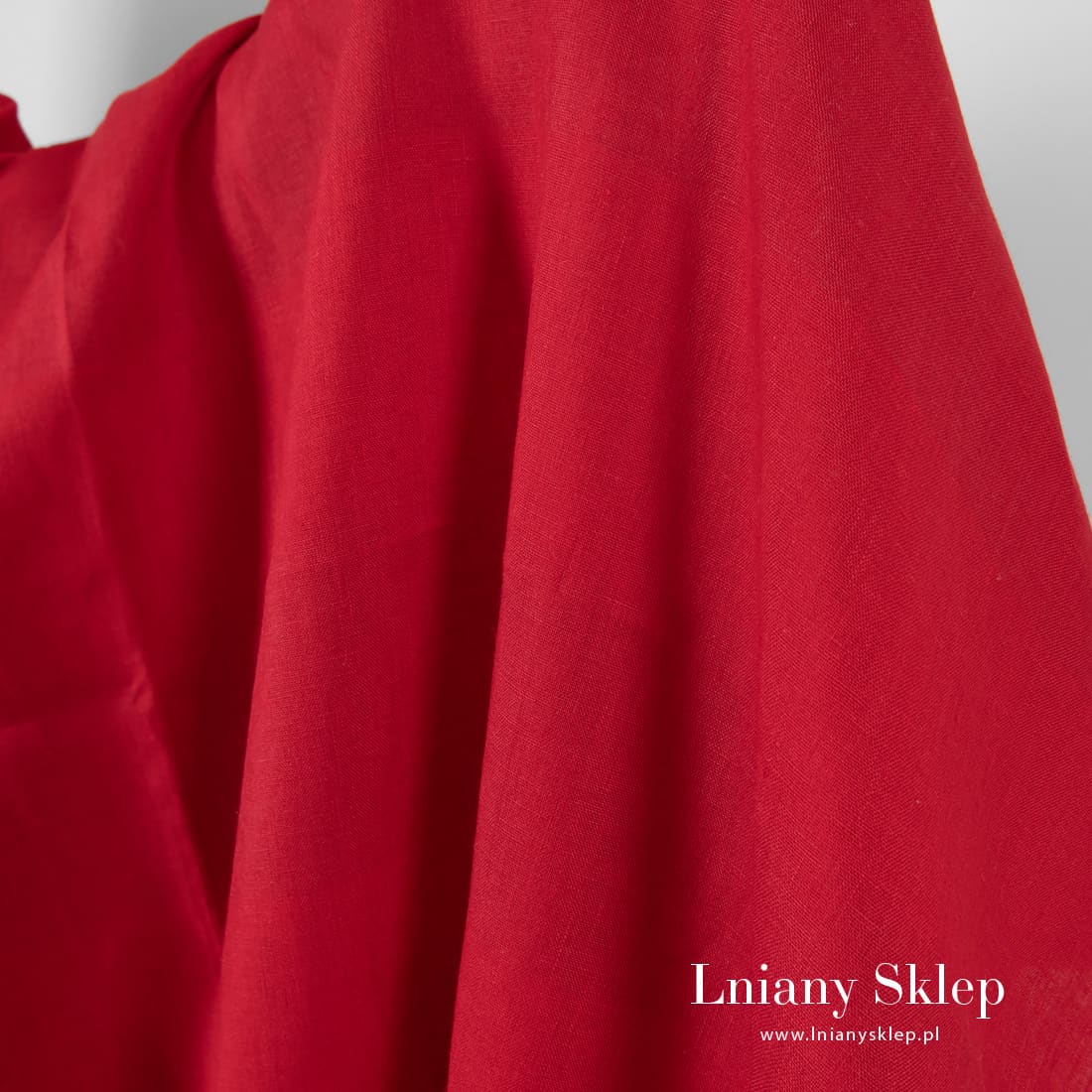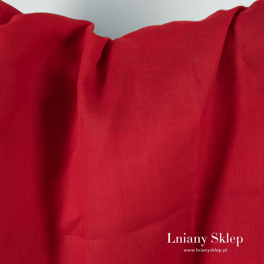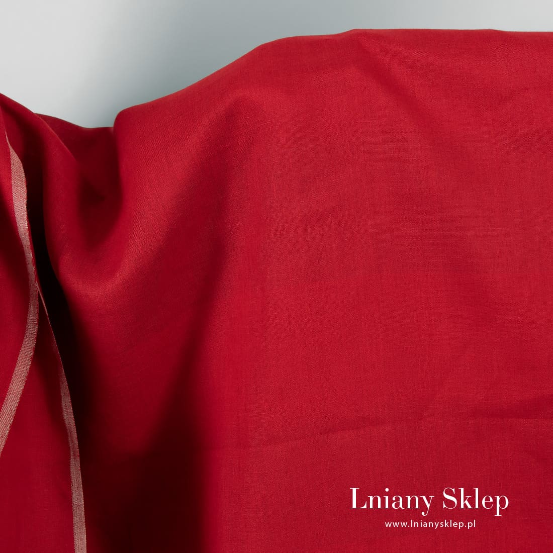 Czerwona tkanina lniana w leciutkie pasy. Wytkana z dwóch przędz o różnych czerwonych odcieniach. Szerokość 150cm len. Ceny producenta.