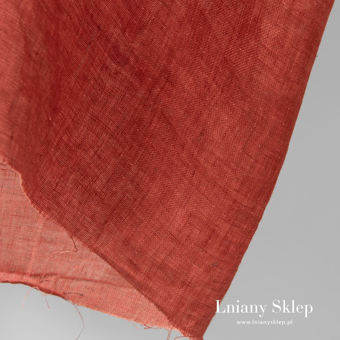 Dwustronna czerwona tkanina lniana. Jedna strona ciemniejsza czerwona, druga – wytkana z jaskrawej różowej przędzy. Mocna, gęsta, średnio gruba tkanina wytkana dwuwarstwowo.