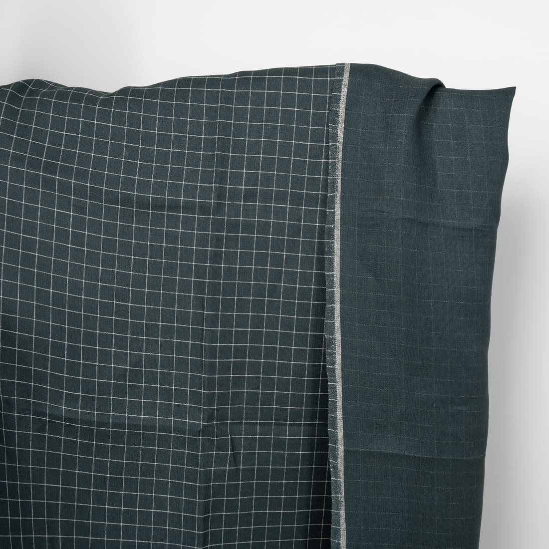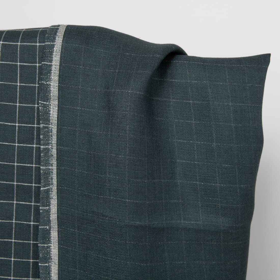 • Dwustronna granatowa w kratkę tkanina lniana
