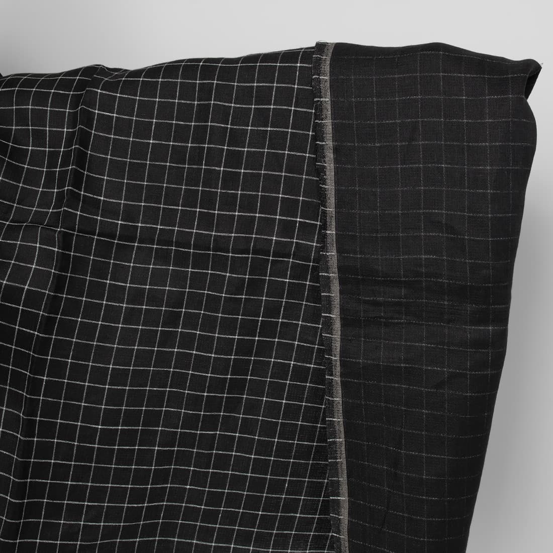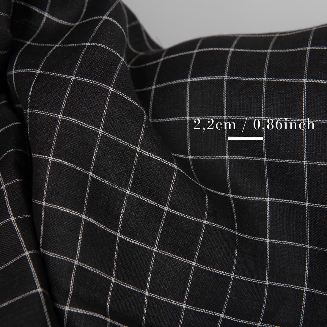 • Dwustronna tkanina lniana w czarno-białą kratkę