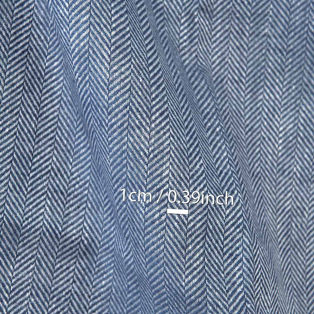 Granatowa tkanina lniana wytkana w splot jodełkowy z granatowych i białych nici. Jakościowa, lekka, gęsta i wytrzymała tkanina lniana odpowiednia na szycie ubrań, poszewek na poduszki i najróżniejszych akcesoriów.