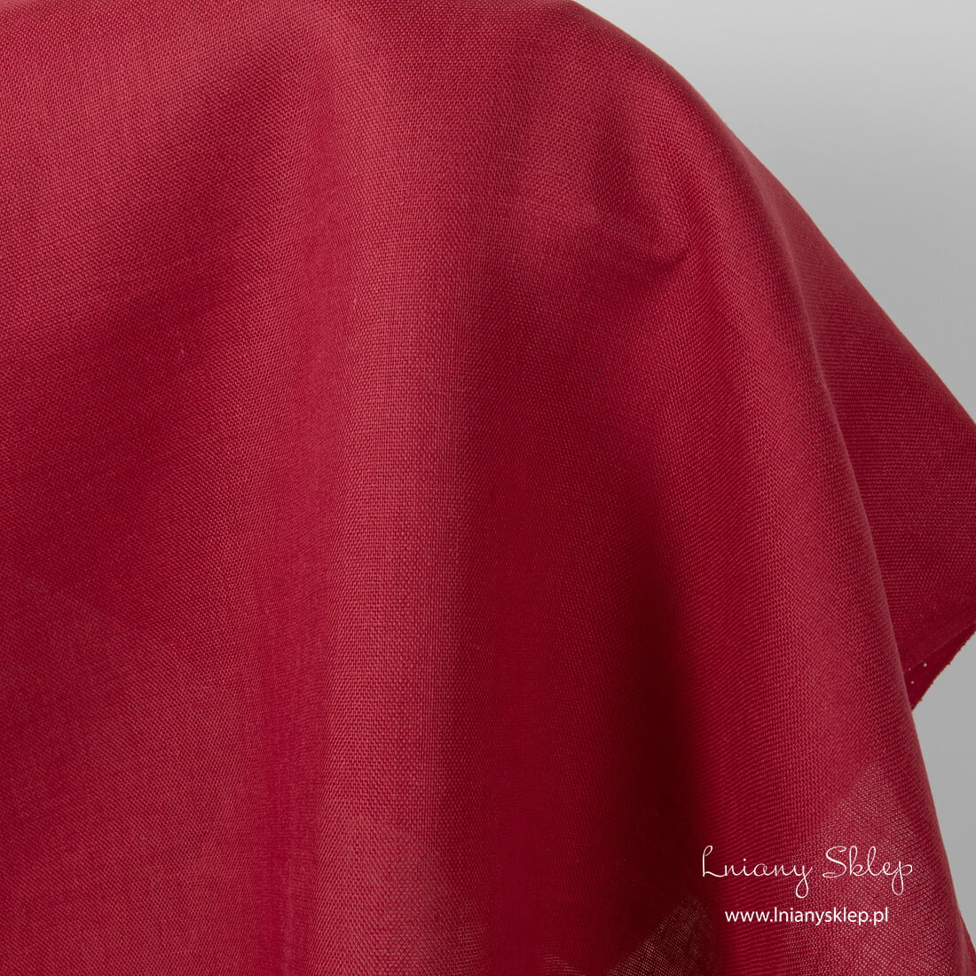 Jaskrawy czerwony len 100%. Splot „Panama”. Mocna, gęsto wytkana, średnio gruba tkanina lniana na szycie najróżniejszych produktów.