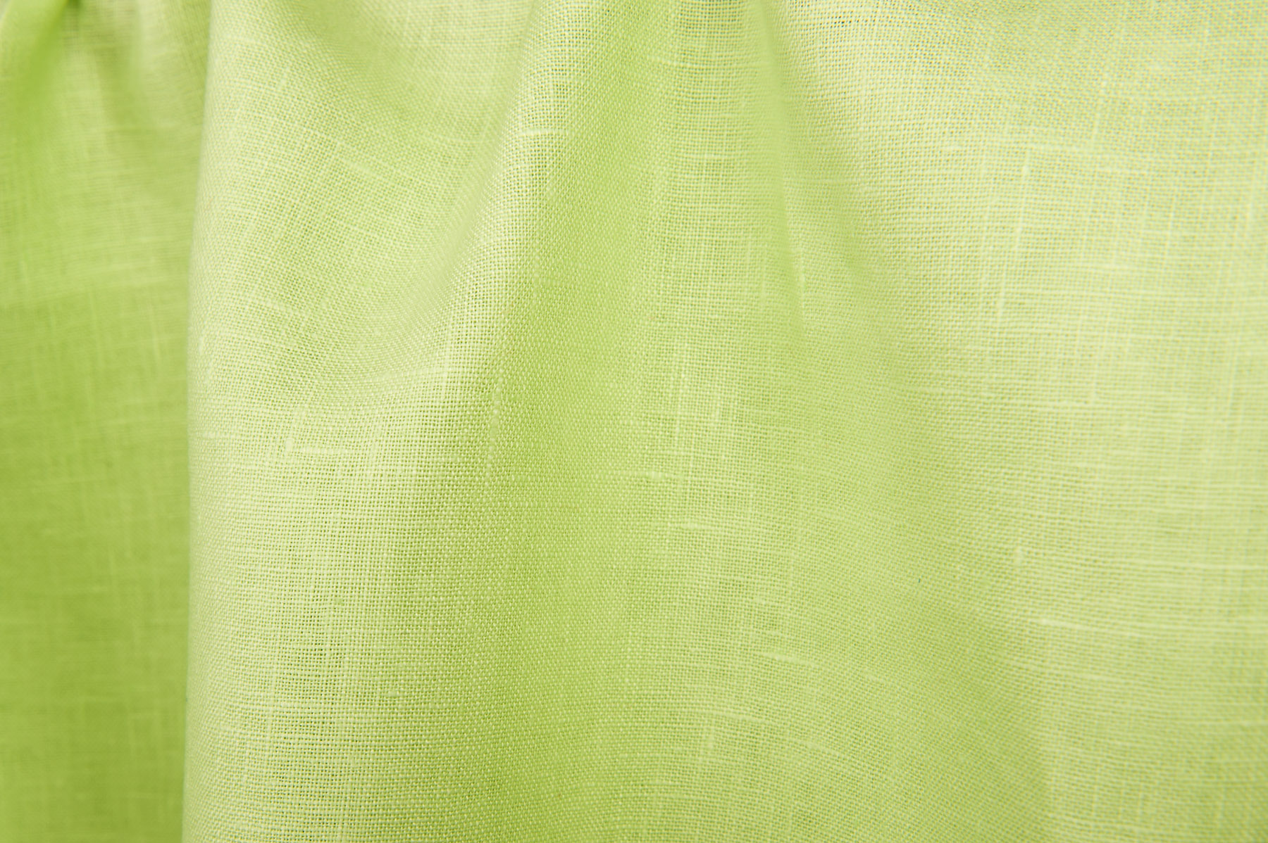 Jasnozielona tkanina lniana wytkana splotem płóciennym. Mocna, gęsta, średnio ciężka tkanina odpowiednia na szycie najróżniejszych tekstyliów domowych i ubrań.