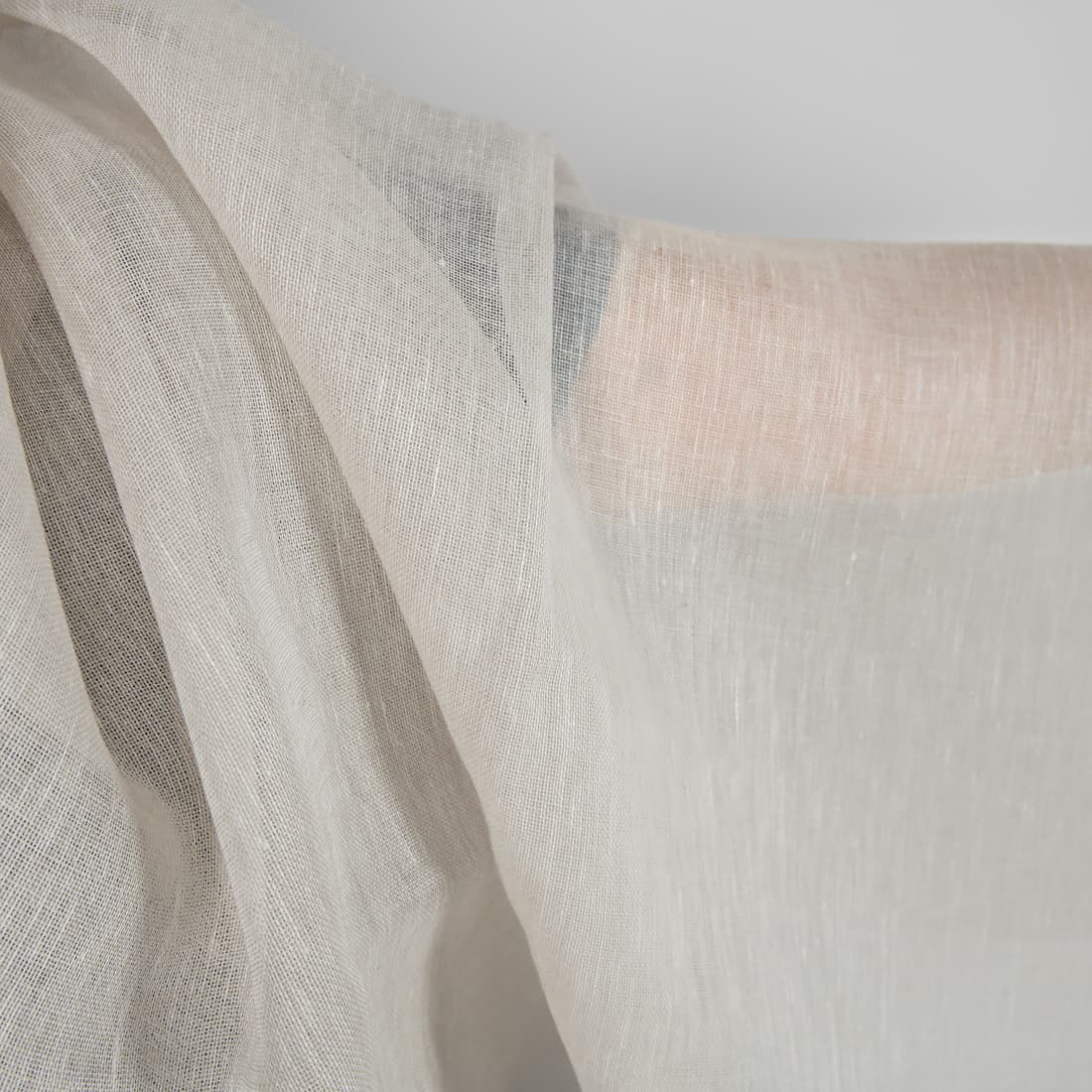 Leciutka, przeźroczysta tkanina lniana wytkana z przędzy białej i o barwie lekkiego różu/beżu. Pasuje do szycia zasłon i firanek, szali, najróżniejszych akcesoriów i in.