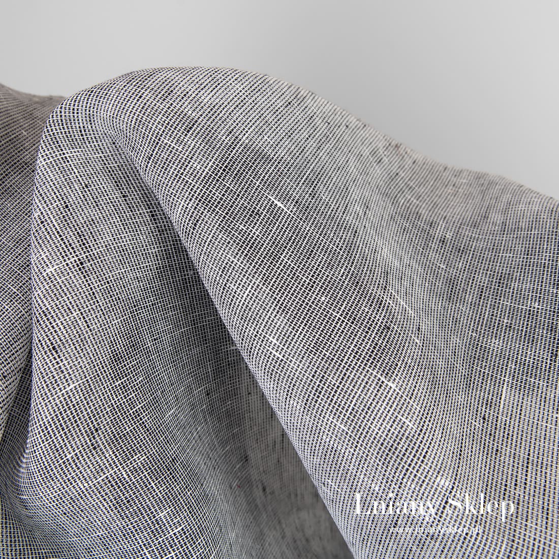 • Lniana biało - czarna przeźroczysta tkanina.