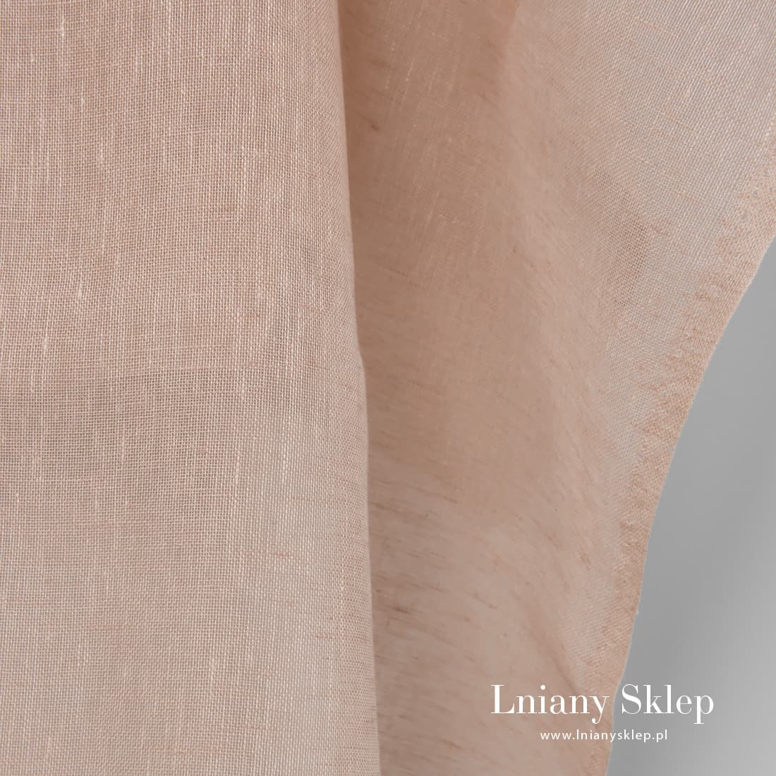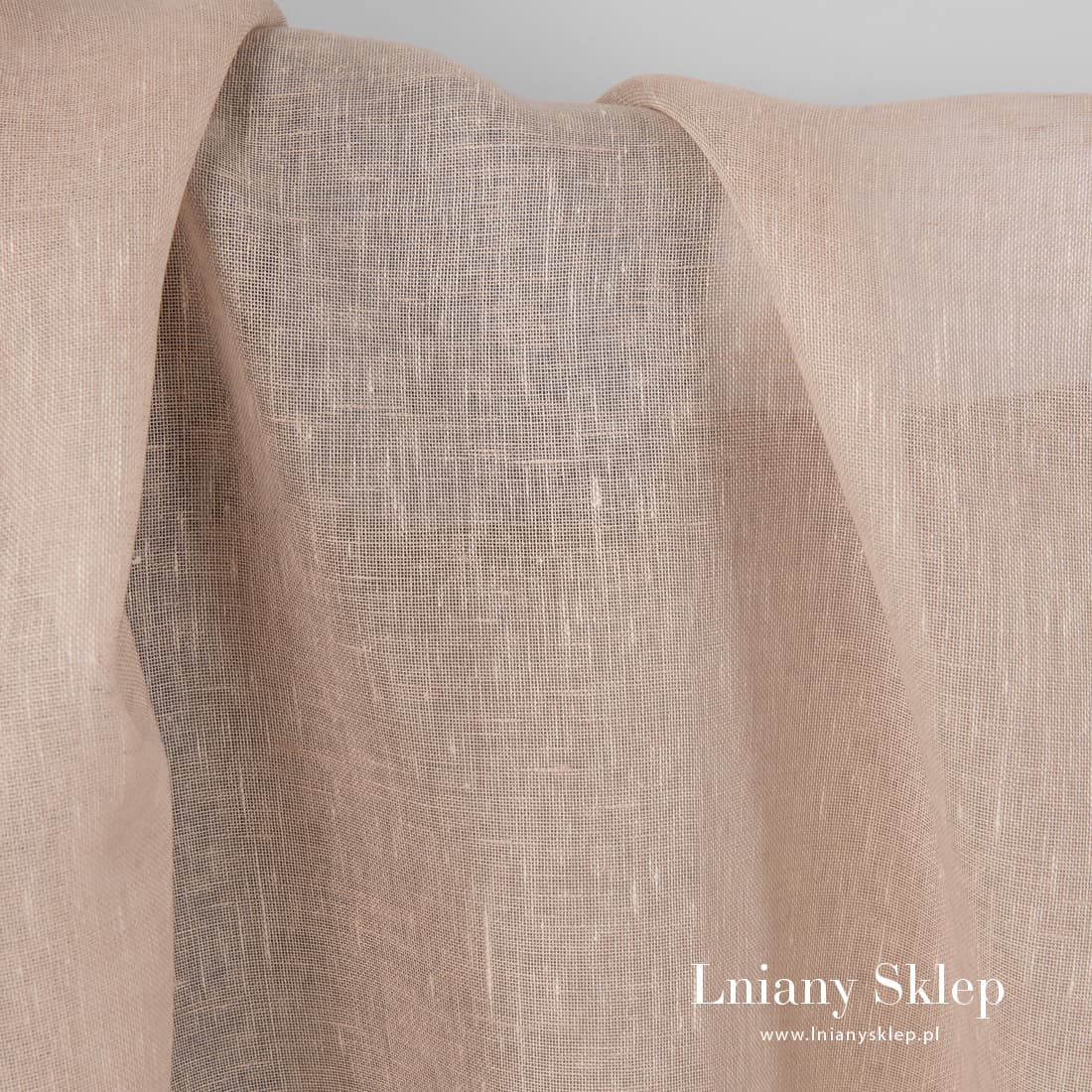 Lniana piaskowa przeźroczysta tkanina. Tkanina wytkana z przędzy lekko żółtej i jasnobrązowej. Lekka tkanina pasuje na szycie firanek, szaliczków i in.