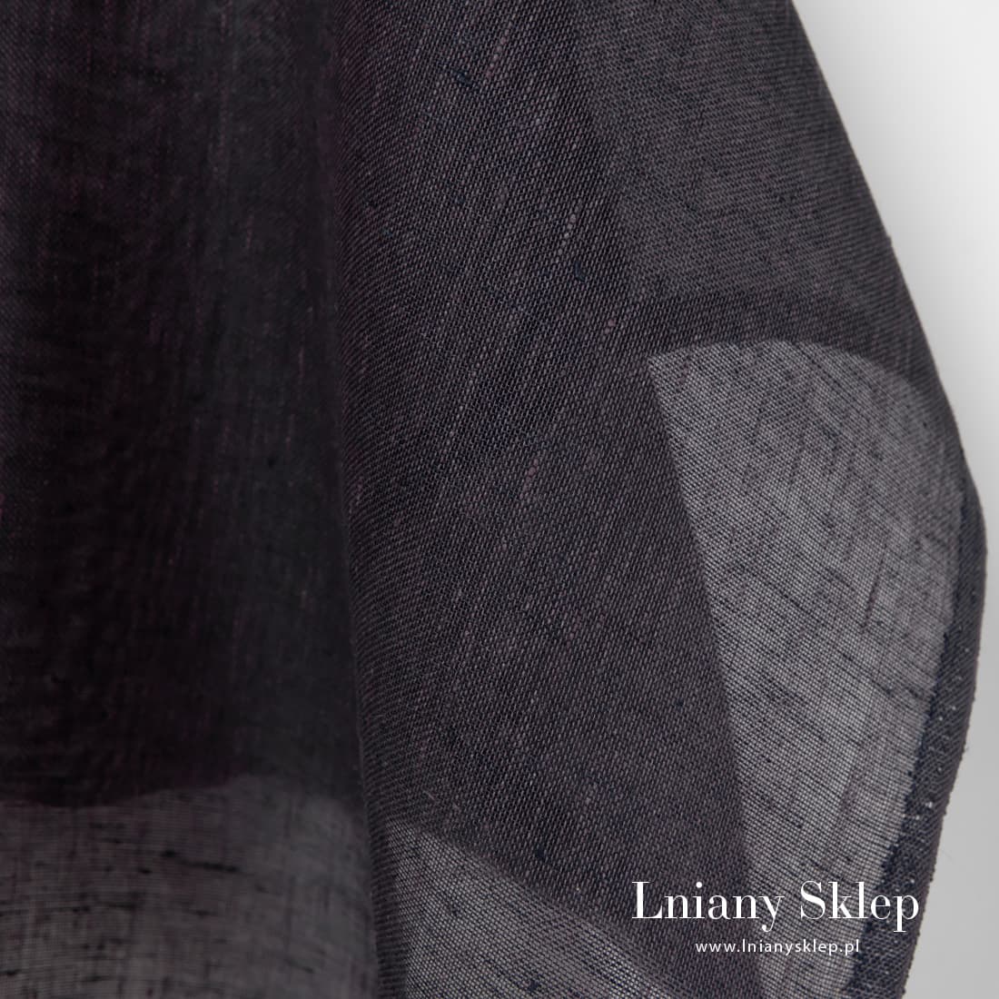 Lniana przeźroczysta tkanina ciemny fiolet. Tkanina wytkana z przędzy fioletowej i ciemnej granatowej (prawie czarnej). Lekka tkanina pasuje na szycie firanek, szaliczków i in.