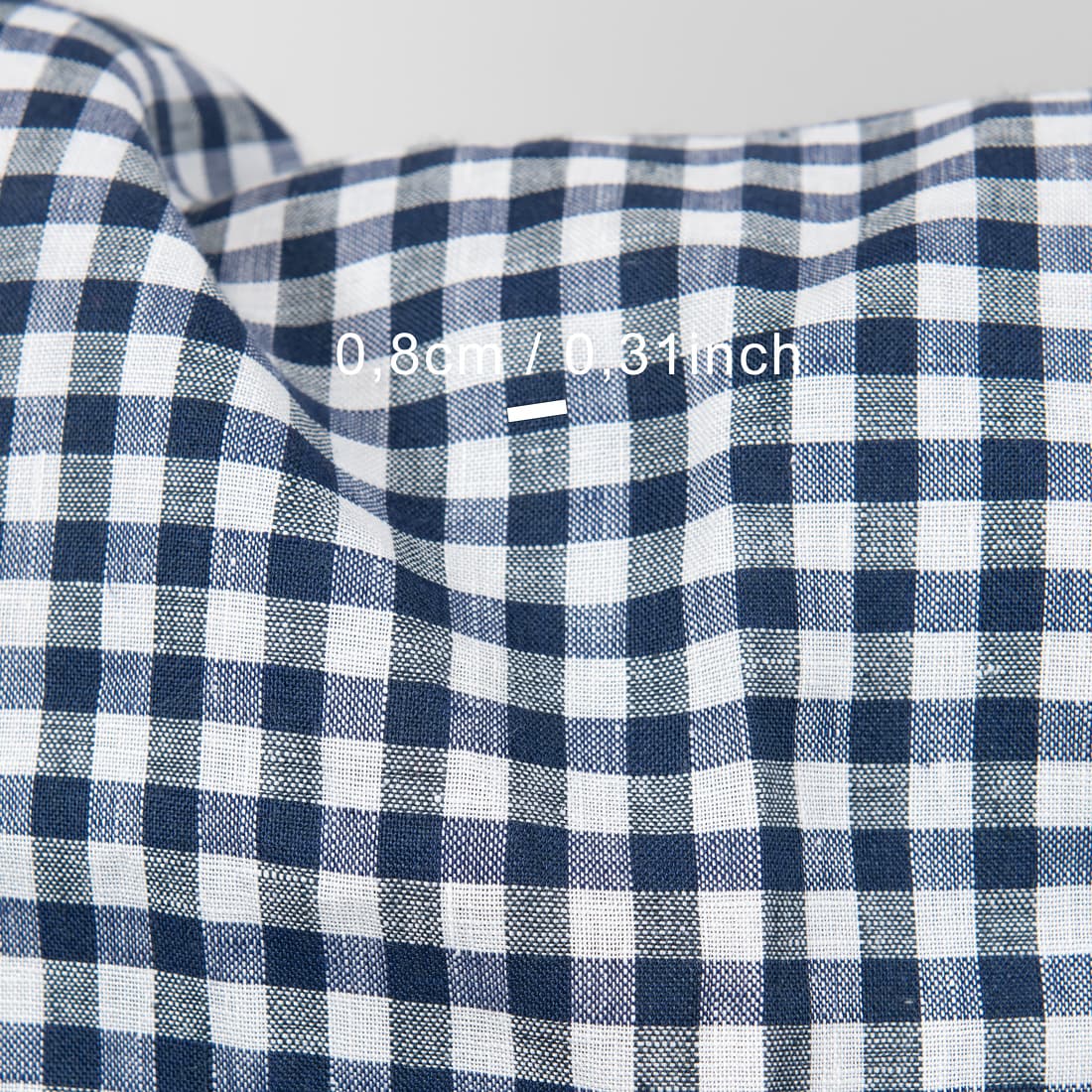 • Lniana tkanina w białą i granatową krateczkę.