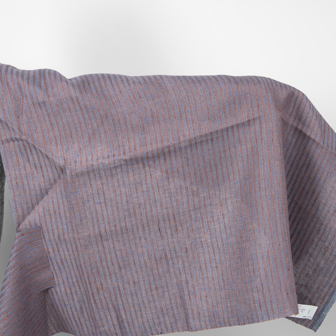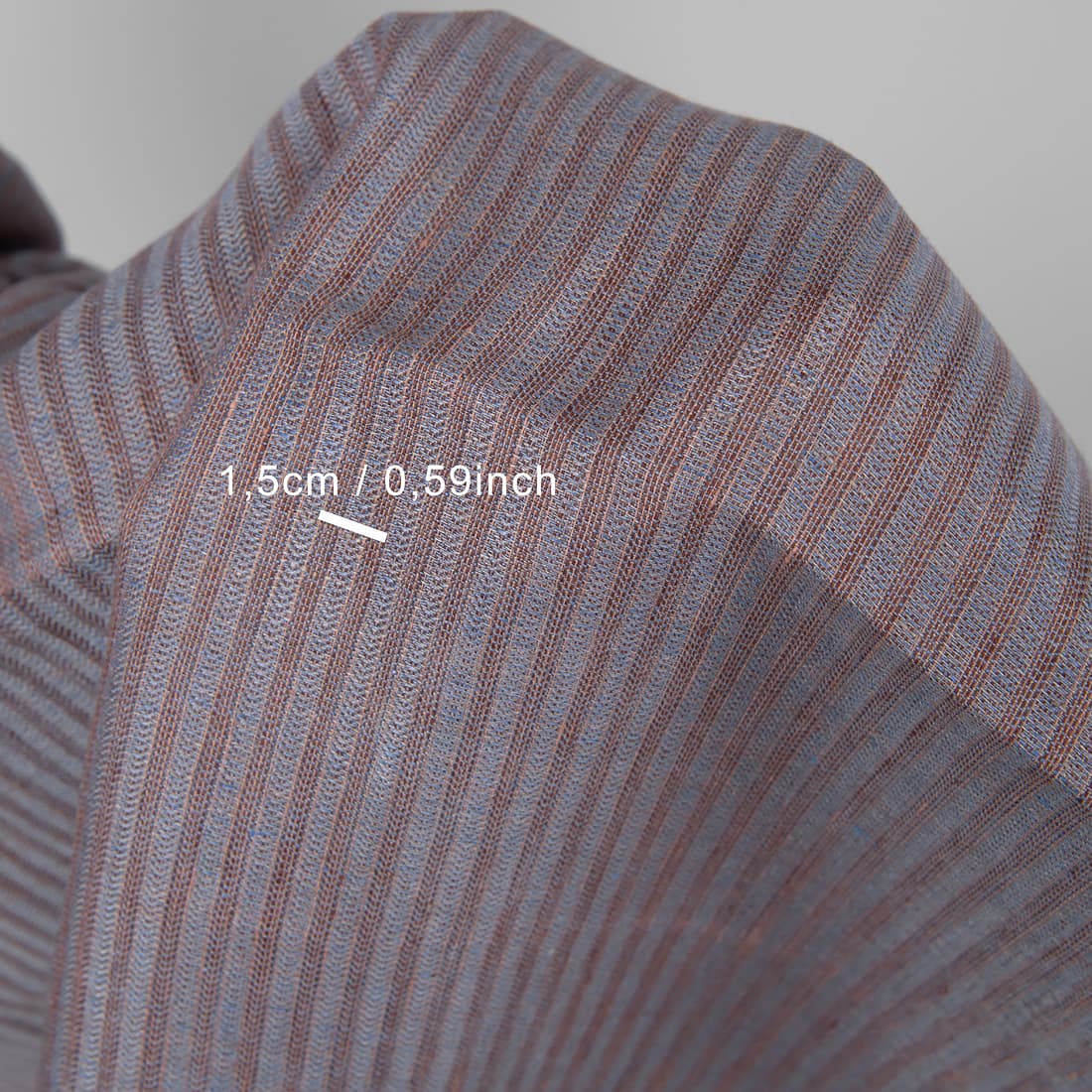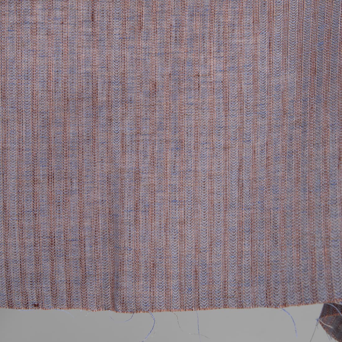 • Tkanina wytkana z brązowej, niebieskiej i szarej przędzy.