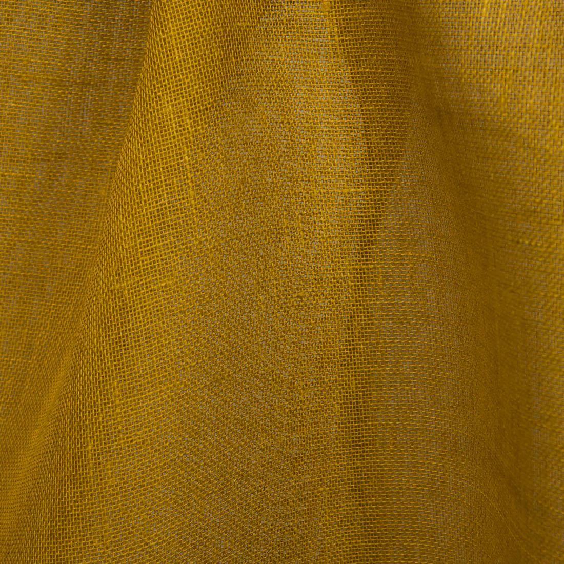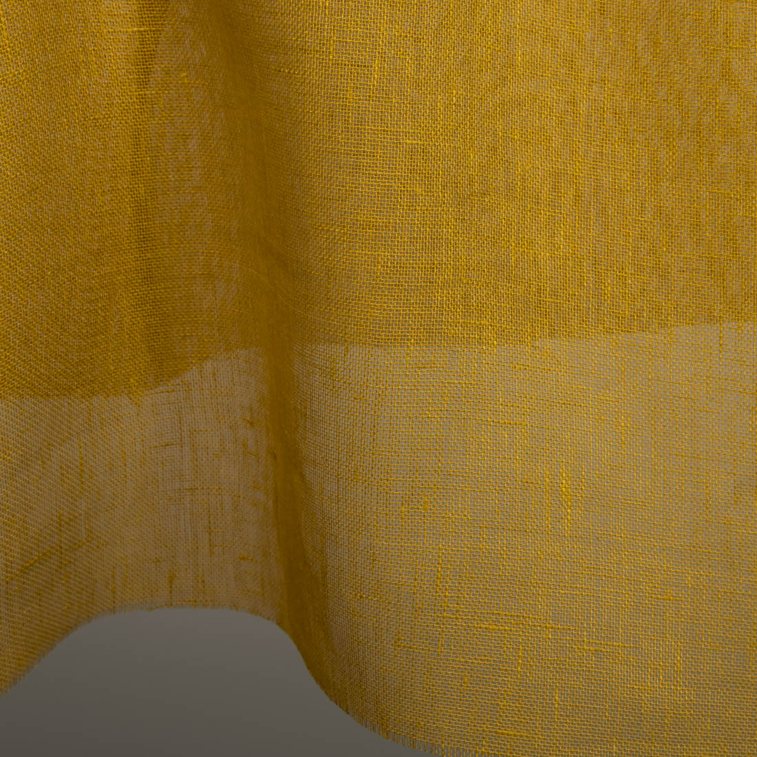 Lniana żółta przeźroczysta tkanina 100% lniana. Odcień tkaniny przypomina musztardę: żółta o lekkim odcieniu zieleni. Cieniutka, rzadko tkana tkanina.