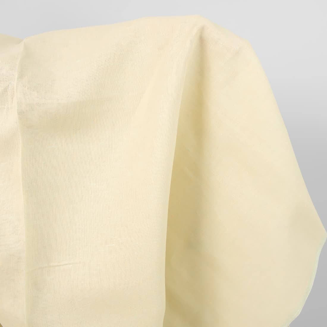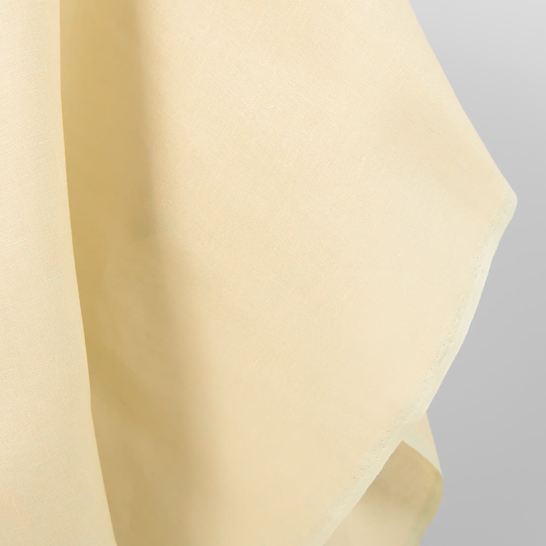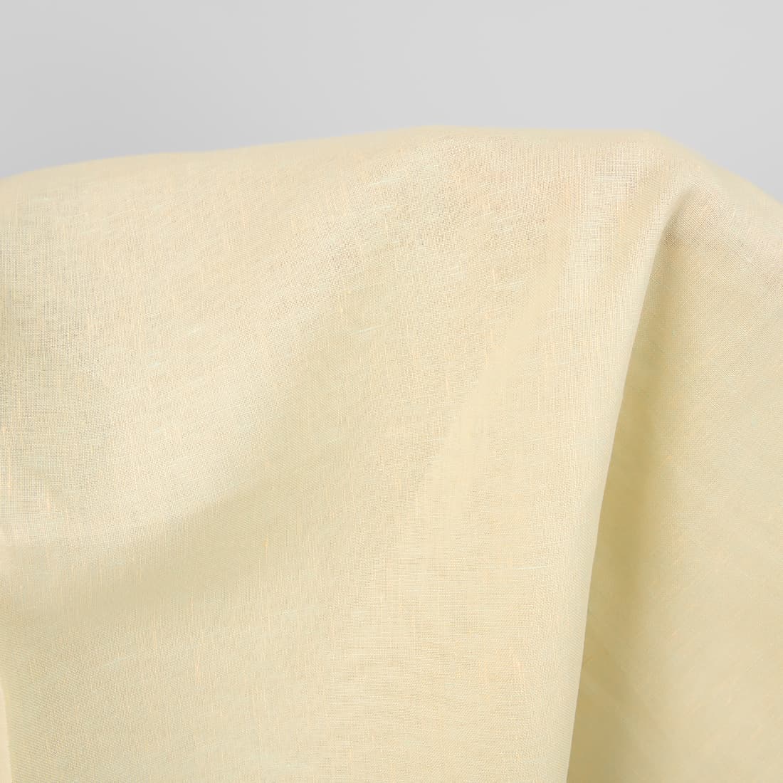 Gładko tkana tkanina 100% lniana. W procesie tkania użyto przędz o różnych barwach: lekko żółtej i zielonej o niebieskim odcieniu.