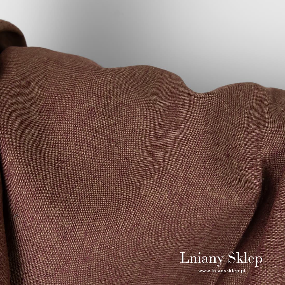 • Kolor: tkanina wytkana w melanżu z przędzy lnianej fioletowej w brąz i zielonkawej