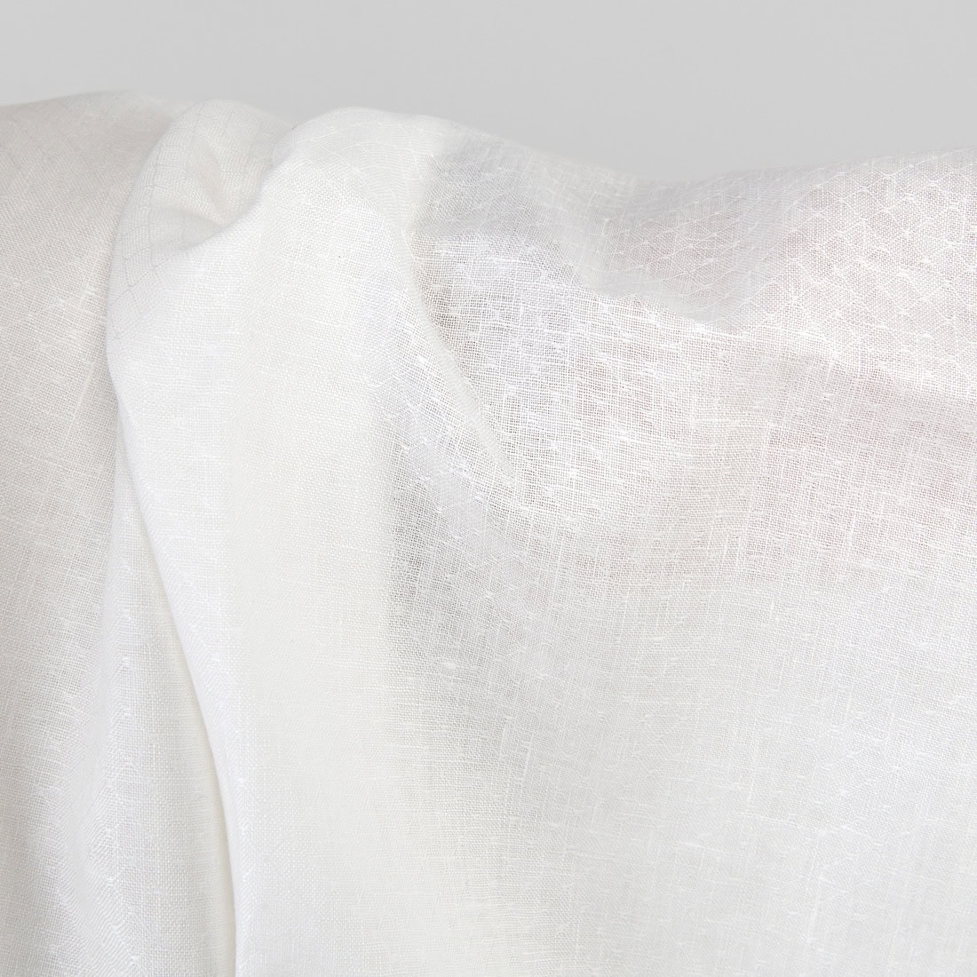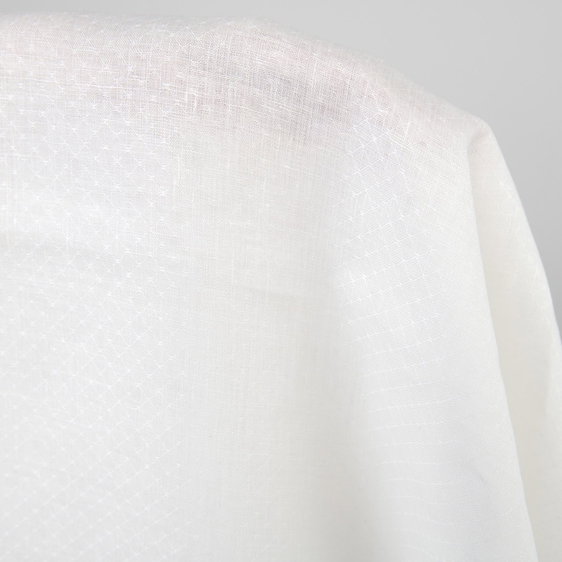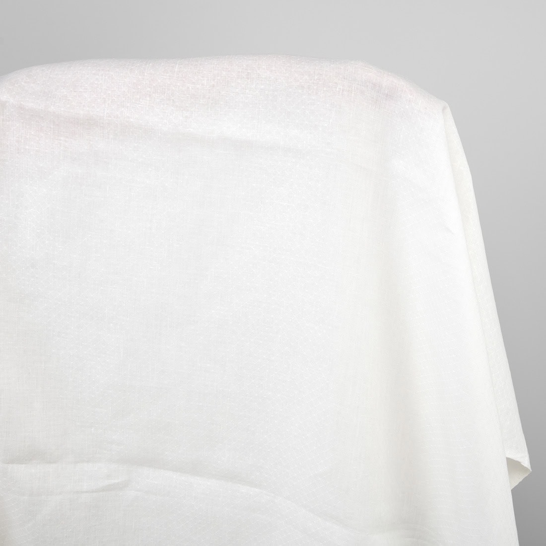 Mlecznobiała (żółtawa), wytkana w delikatny geometryczny wzór tkanina lniana. Lekka jakościowa tkanina lniana odpowiednia na szycie konfekcji stołowej i pościelowej, zasłon, ubrań i najróżniejszych akcesoriów.