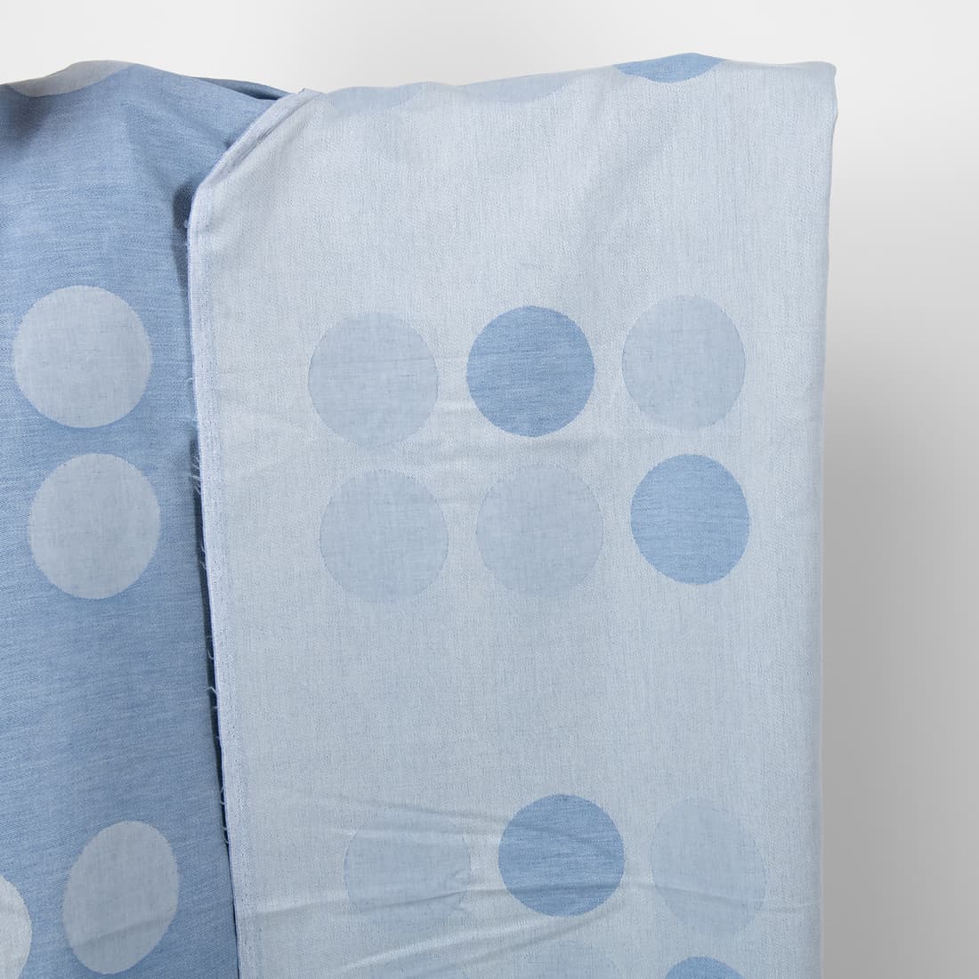 • Niebieskawy żakardowy len z bawełną na odzież i tekstylia domowe.