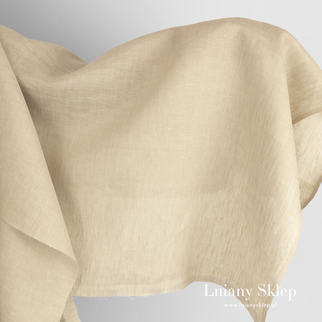 • Beżowa tkanina lniana.