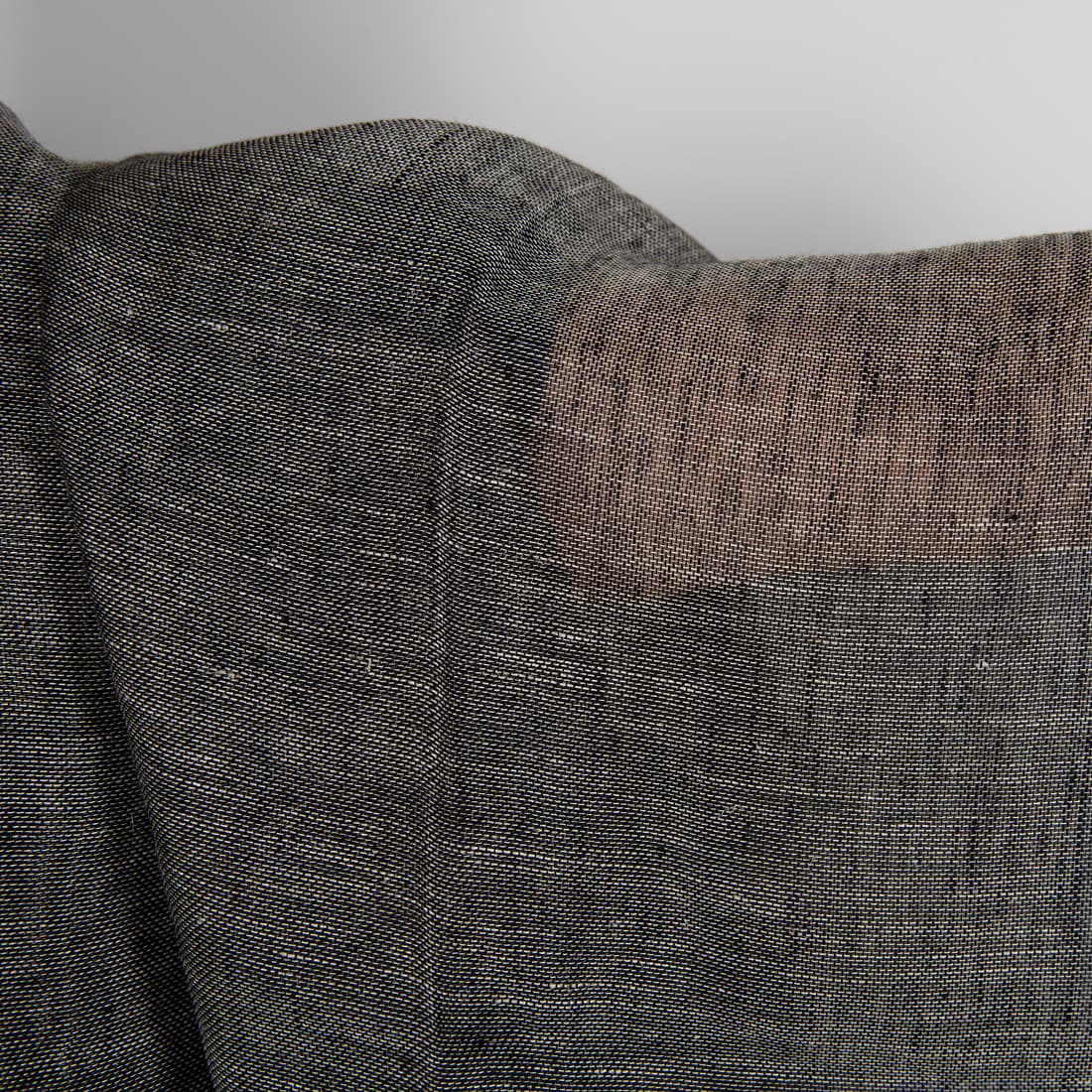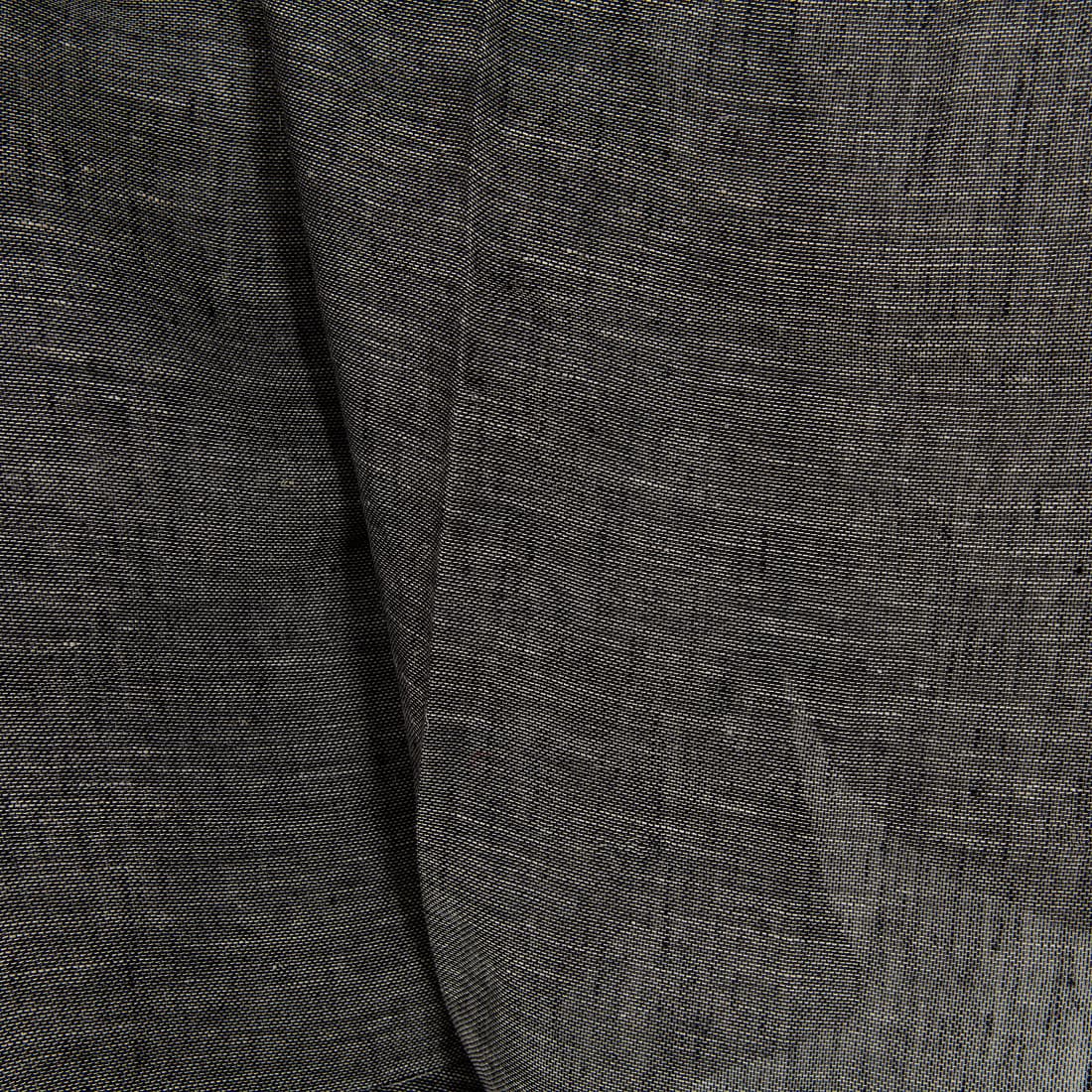 Przeźroczysta ciemna szara tkanina lniana wytkana z przędzy czarnej i niebarwionej, szarej, naturalnej - w kolorze lnu. Leciutka, rzadko tkana tkanina 100% lniana.