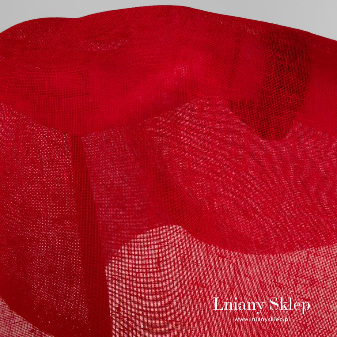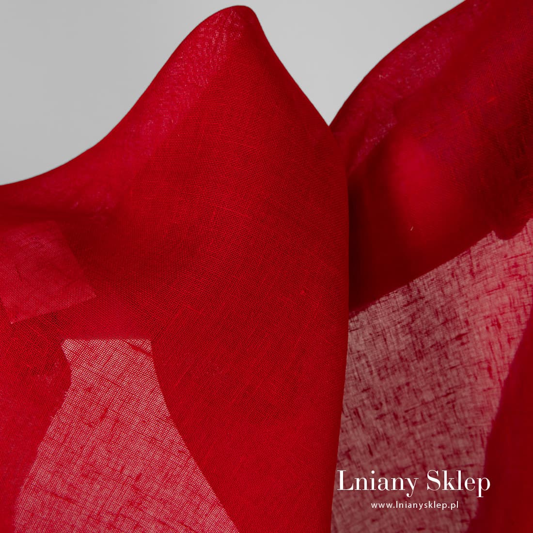 Przeźroczysta tkanina lniana kolor czerwony wytkana rzadko, lekka. Len 100% na szycie lekkich firanek, szaliczków i in.