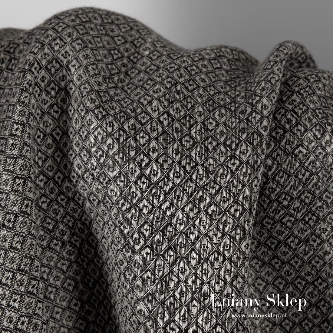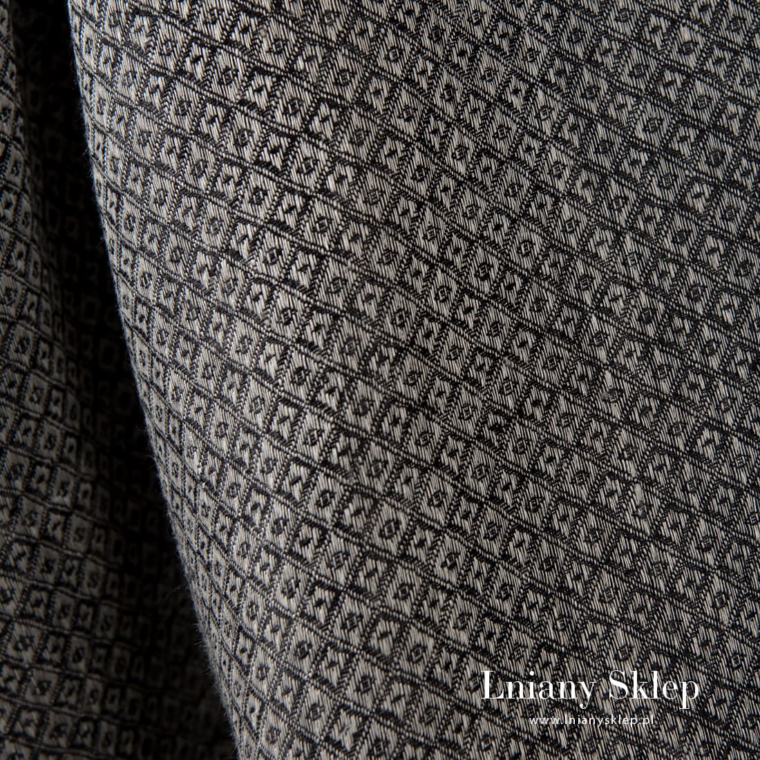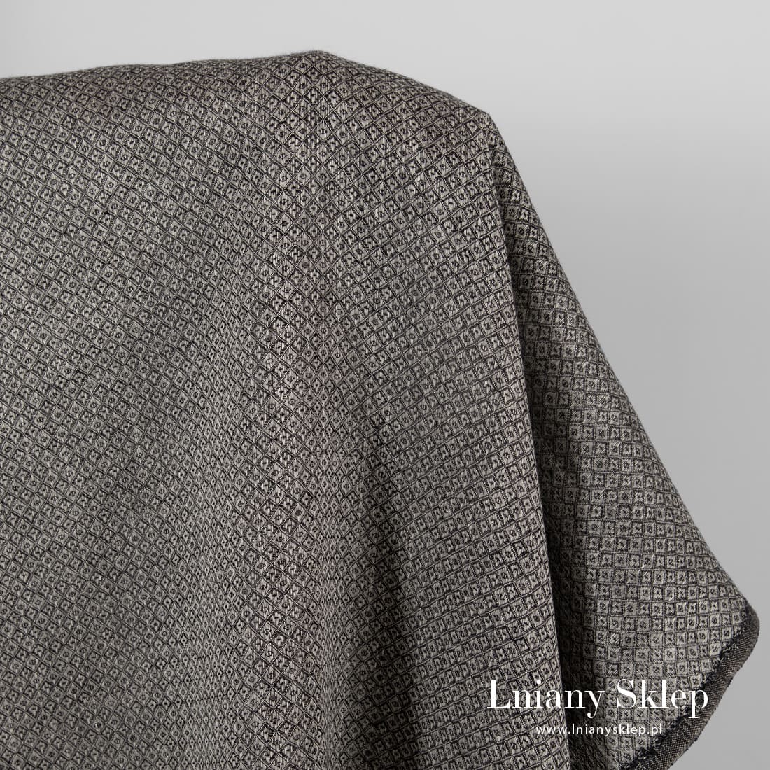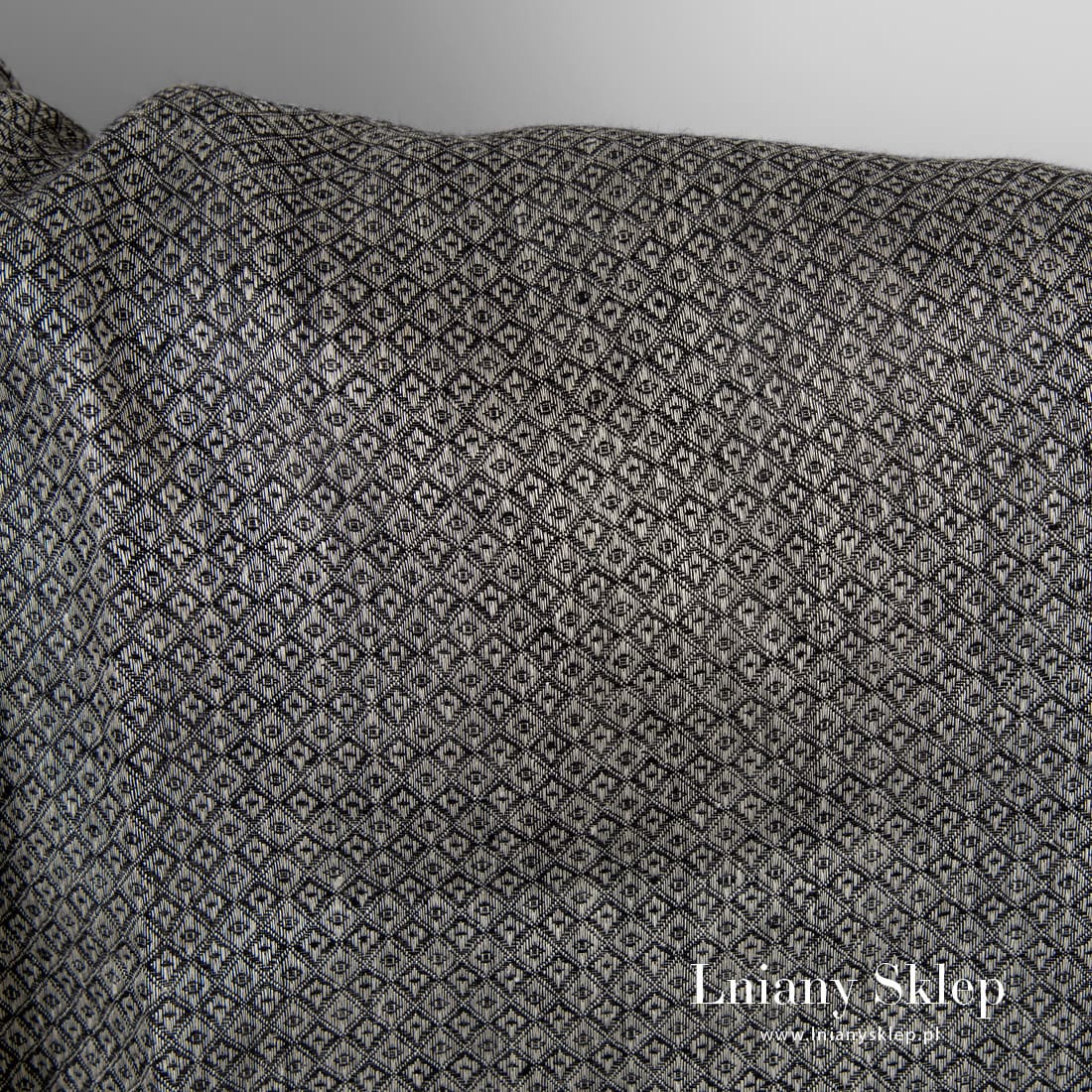 - Kolor: wytkany z niebarwionej (szarej o piaskowym odcieniu) i czarnej przędzy