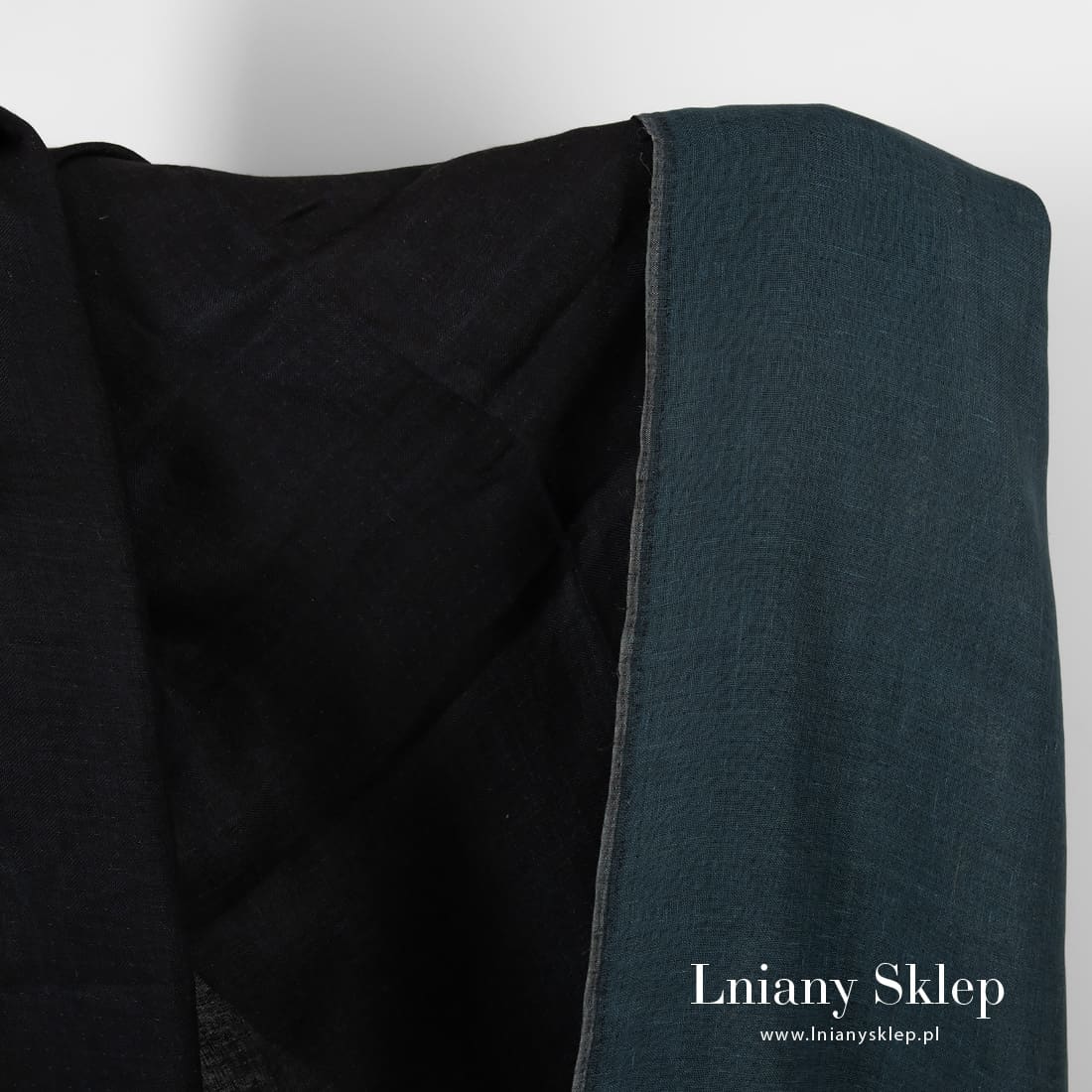 • Tkanina dwustronna granatowa i czarna.