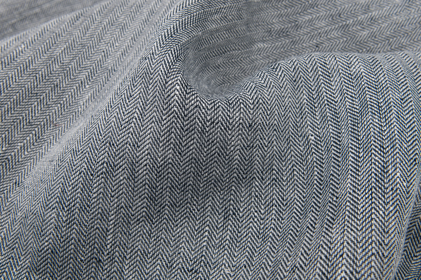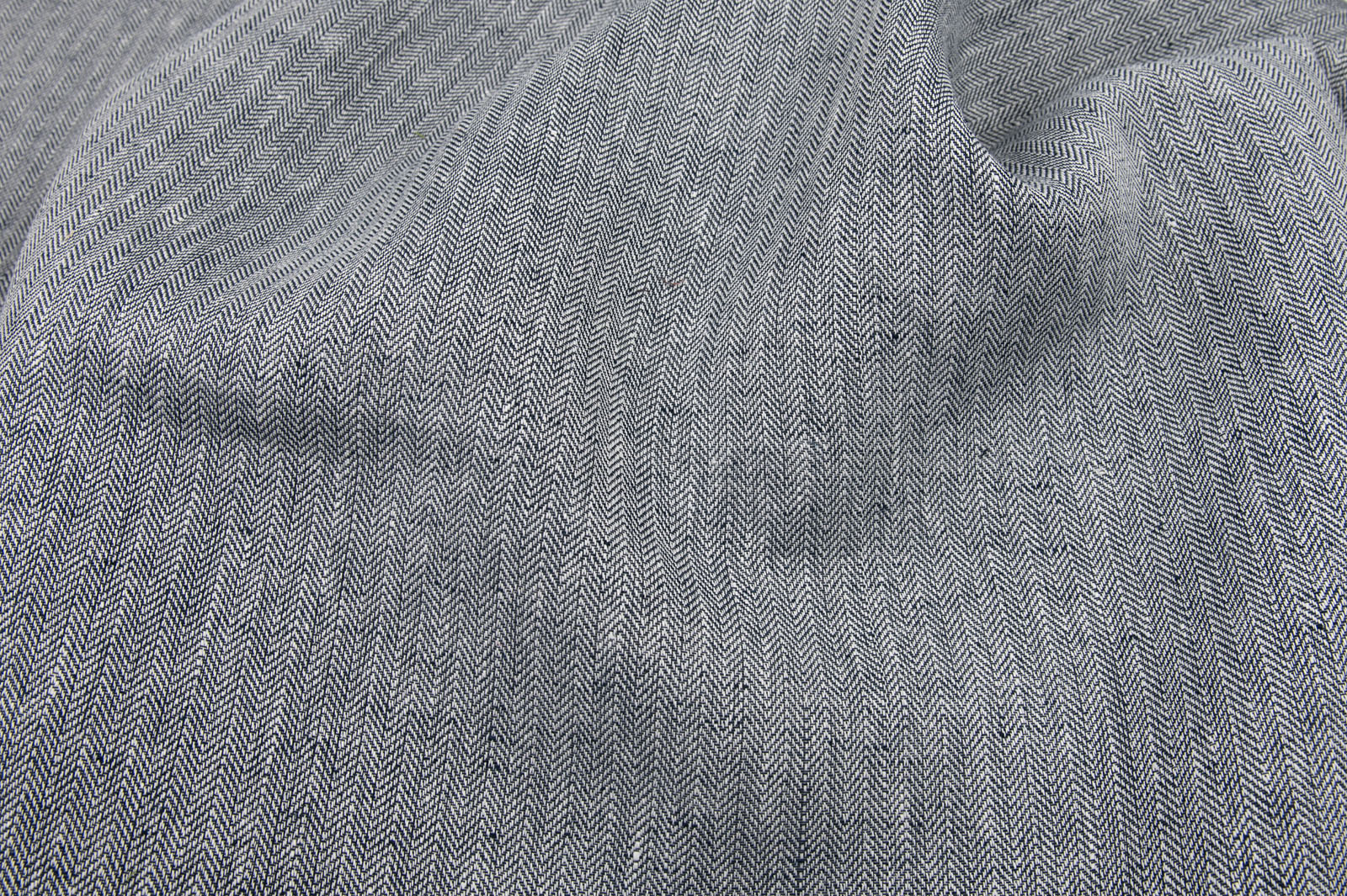 • Lniana tkanina czarno-biały splot jodełkowy.