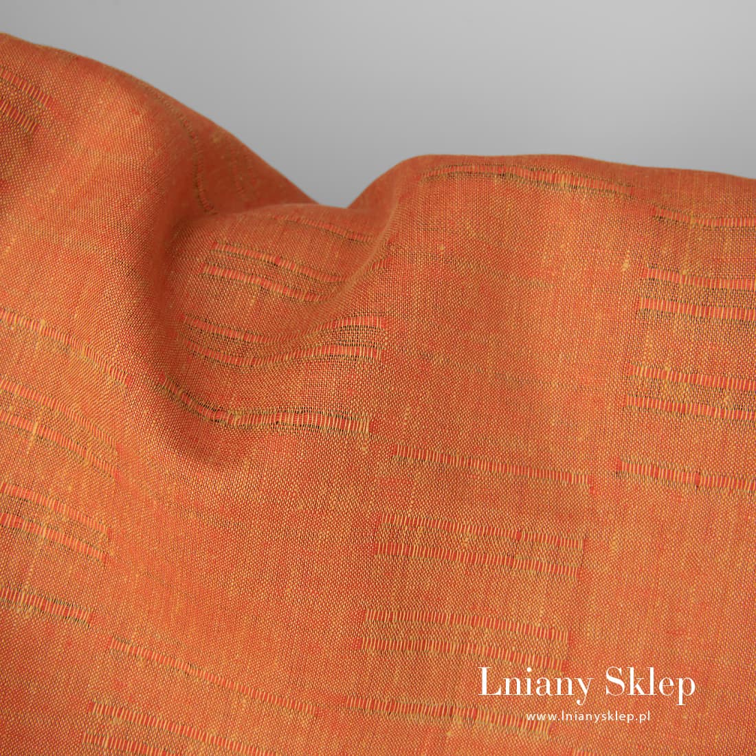 • Tkanina lniana czerwona z żółtym w prążki.