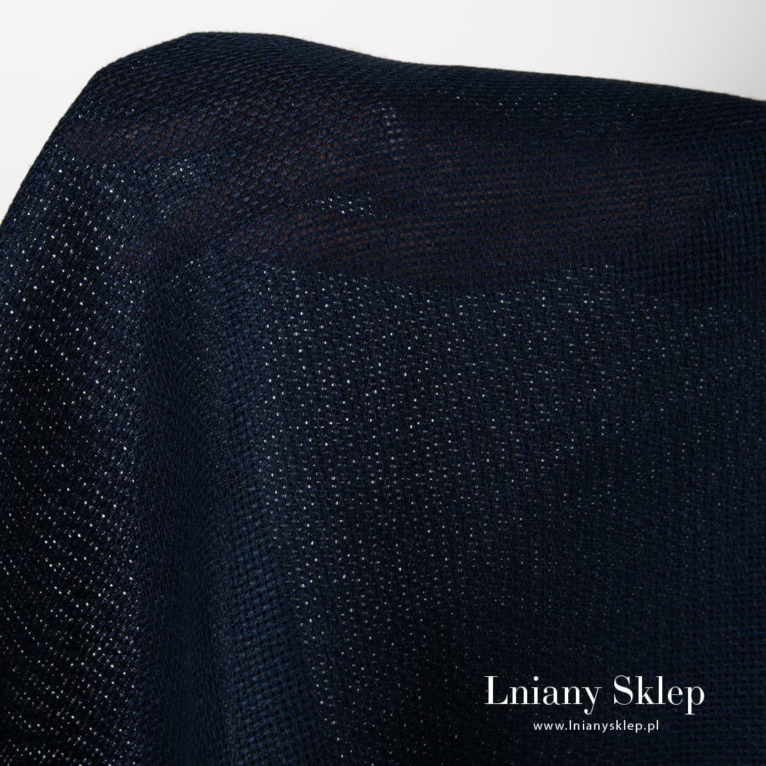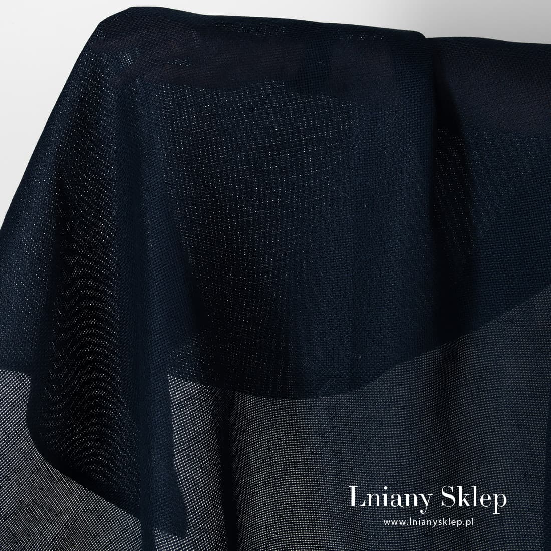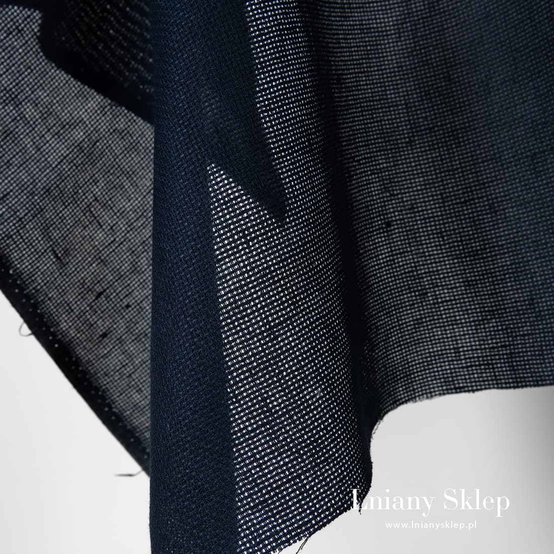Tkanina lniana granatowa kanwa. Wytkana splotem, który się układa w przeźroczyste, drobniutkie kwadraciki. Tkanina pasuje do haftu i na wykonanie różnych robótek.