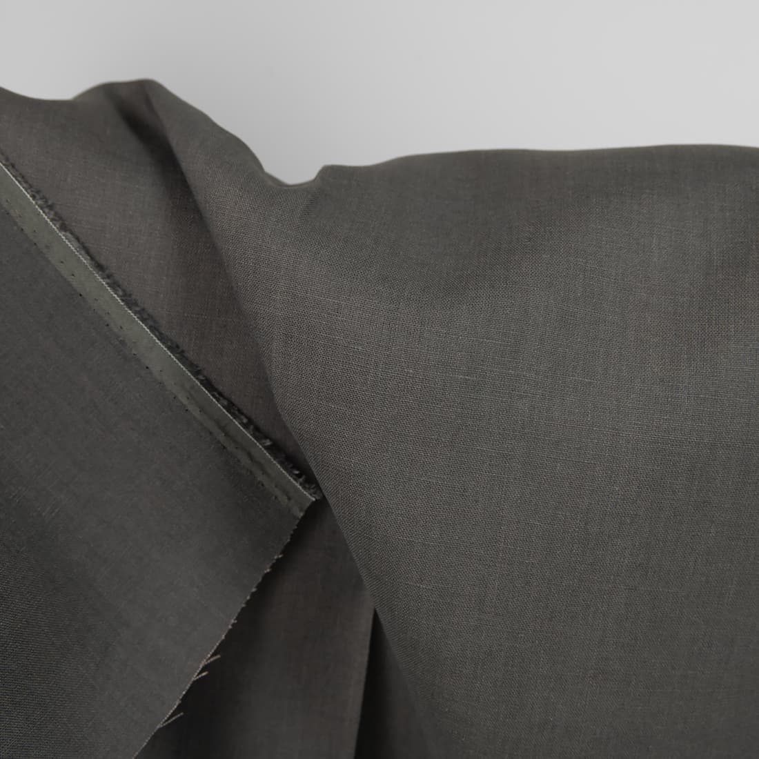 Tkanina lniana szara ciemna. Wiele produktów wykonanych z tej dość gęstej i ciężkiej tkaniny będzie się prezentowało pięknie.