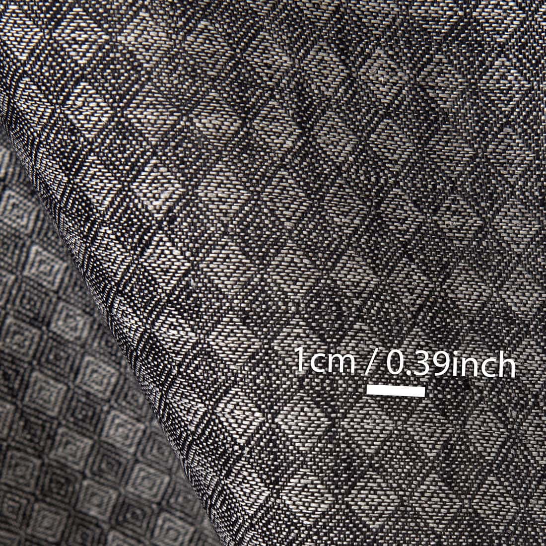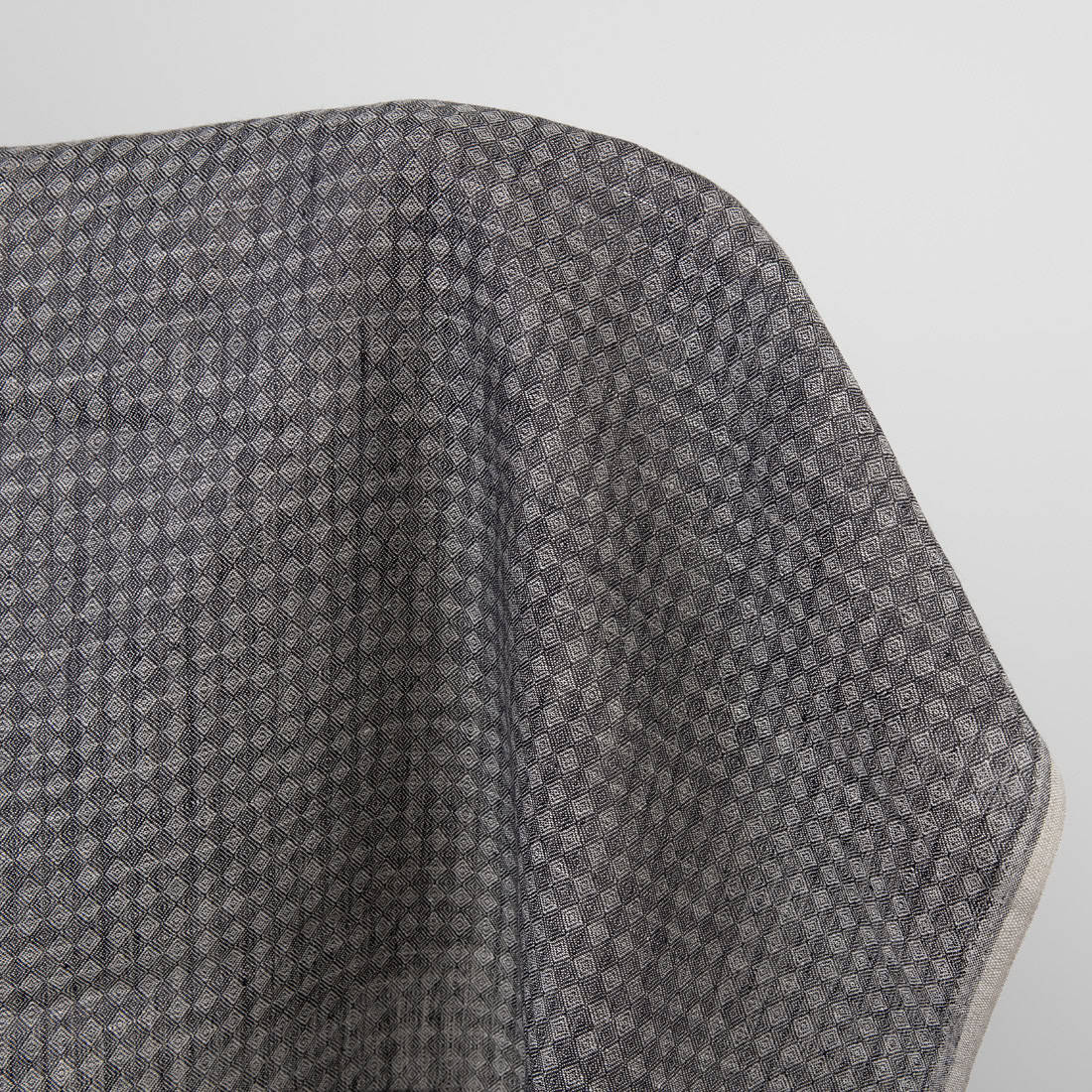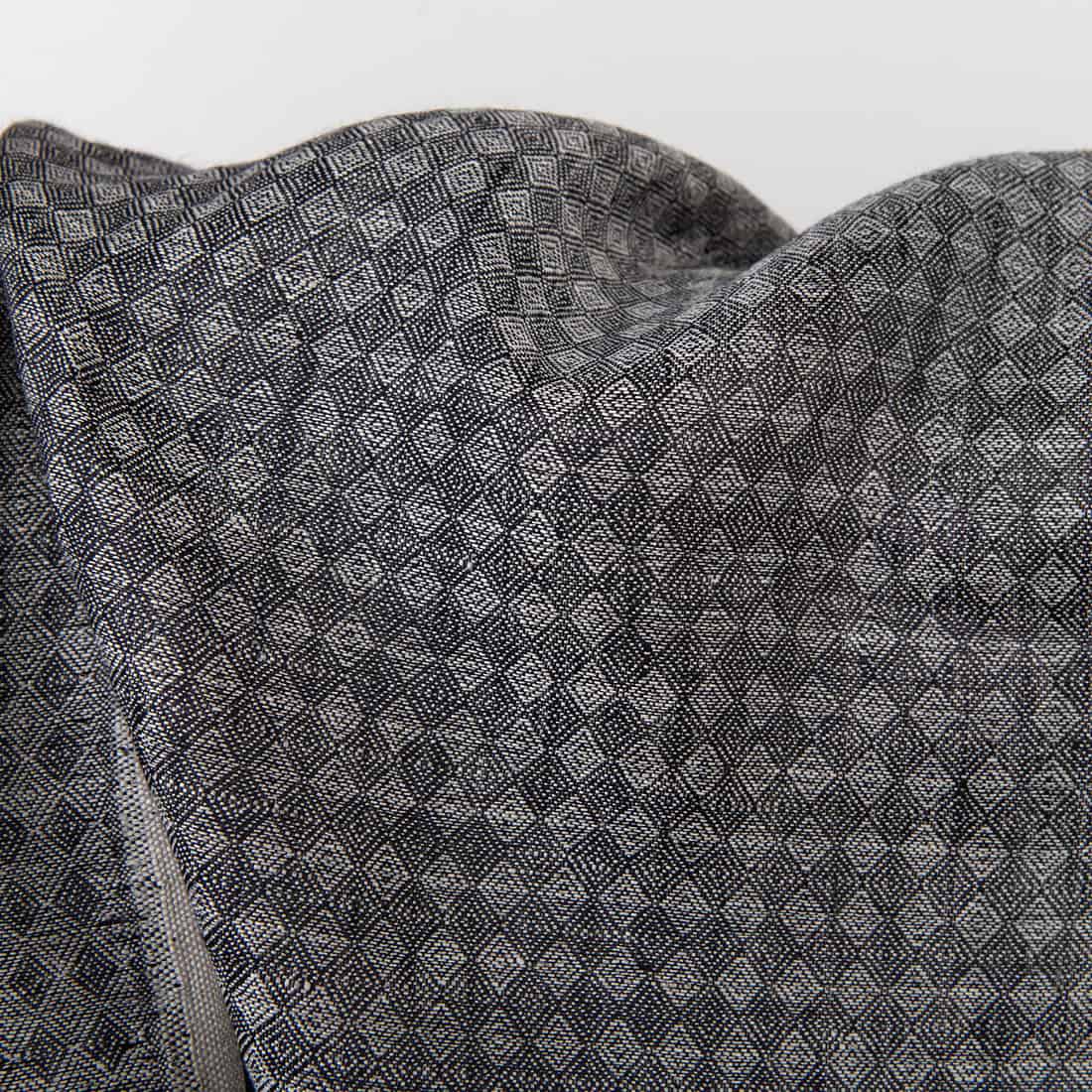 Tkanina lniana wytkana we wzór niedużych rombów. Do wytkania tej tkaniny użyto przędzy o dwóch barwach: czarnej i naturalnej (niebarwiony jasnoszary len). Gęsta, średnio ciężka tkanina lniana o praktycznym wzorze i kolorze może być wykorzystana do szycia najróżniejszych produktów.